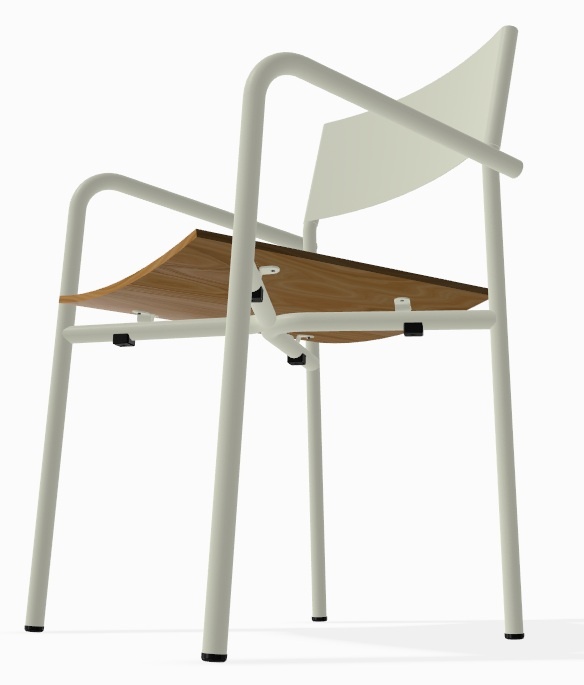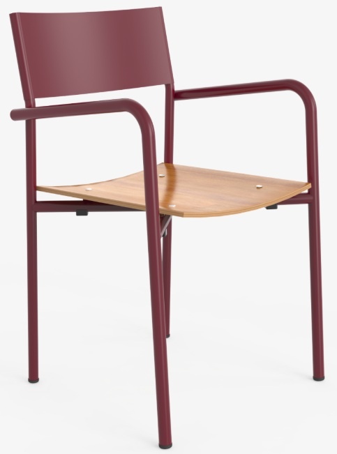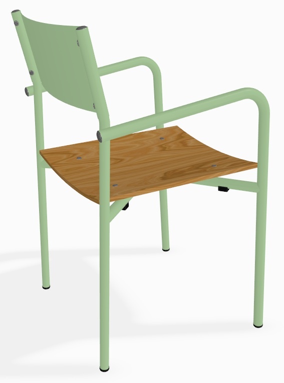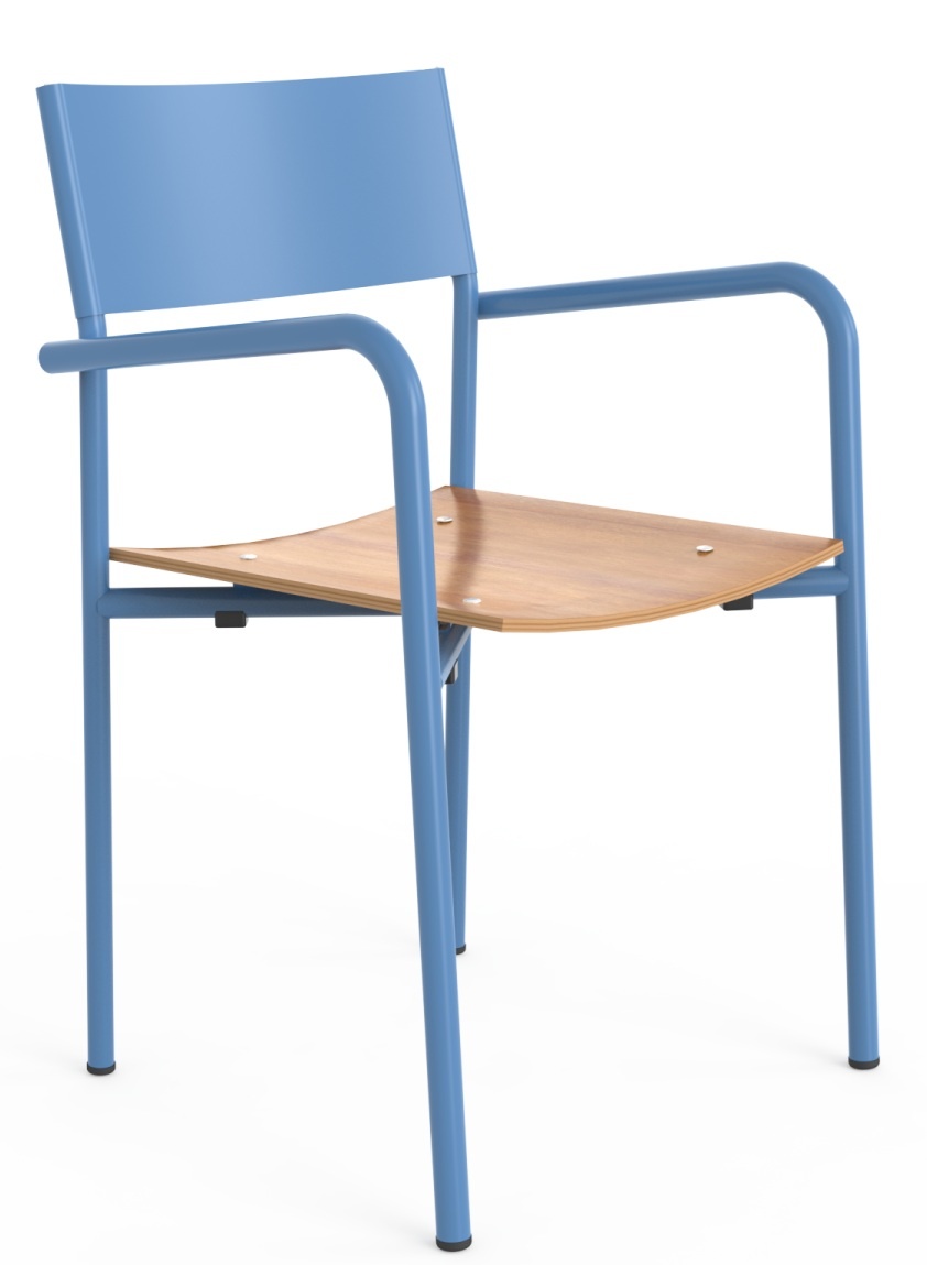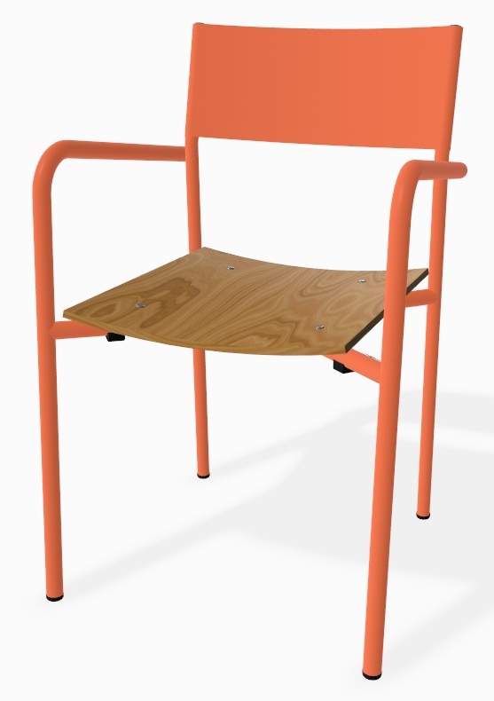 Een epoxy gecoat stalen frame en rugleuning en een zitting van Okoumé Plywood, hiermee maakt het een zeer comfortabele stoel voor ieder terras, horeca, kantooromgeving of thuis.