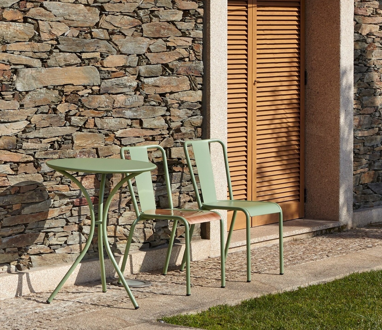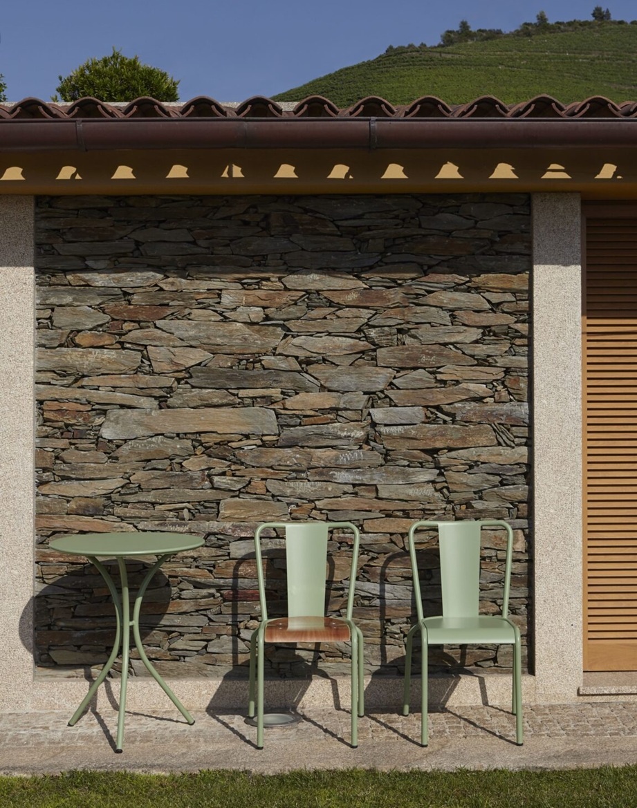 Een tijdloos ontwerp, de Portugese stoel zou geïnspireerd zijn door de Duitse Bauhausschool en de gebogen stalen buizenstoelen van enkele pioniers in meubeldesign, zoals René Herbst, Marcel Breuer of Mies van der Rohe. Een epoxy gecoat stalen frame, zit- en rugleuning; hiermee maakt het een ideale stoel voor ieder terras, horeca, kantooromgeving of thuis.