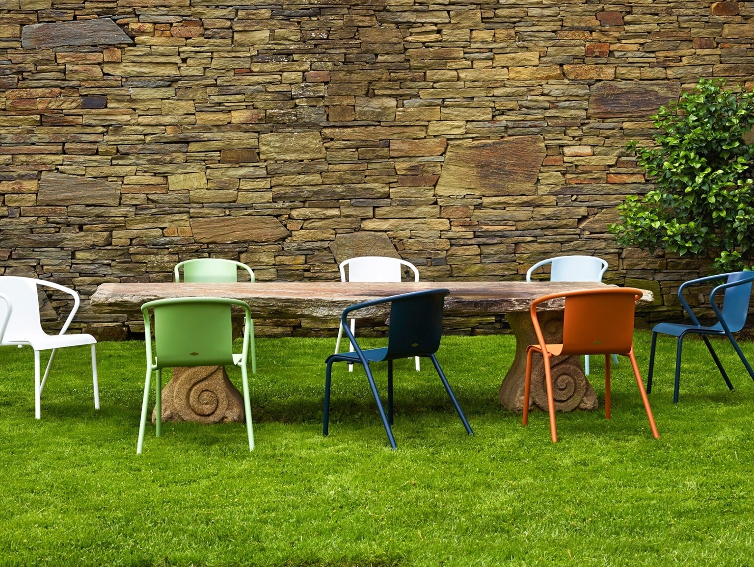 De Adico Manel terrasstoel: De Manel-stoel van Pedro Sottomayor volgt de constructielijn van de Maria-stoel, met kleine verschillen, zoals de grotere leuningen, die het nog dichter bij de Portugese stoel brengen, maar met de continue en lichte top, kenmerkend voor beide creaties van Sottomayor.