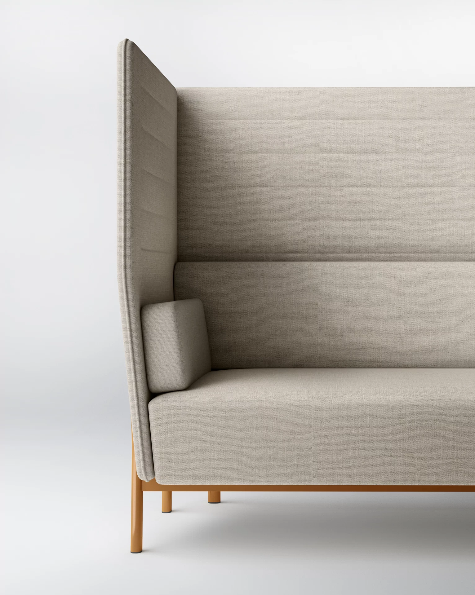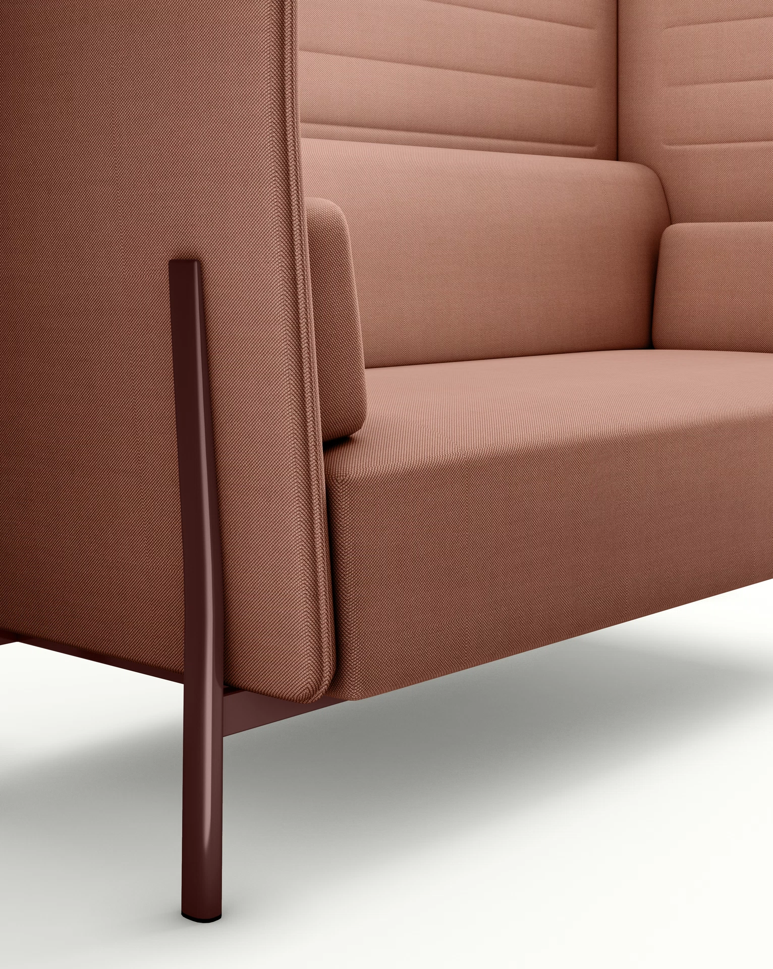De Alias Eleven high back akoestische 2-zits bank is van uitzonderlijke visuele zuiverheid. Als kenmerkend element de aluminium poten waaraan de armleuningen en de rugleuning worden vastgemaakt. Een zitmeubelsysteem van één, twee en drie zitplaatsen, ontworpen door PearsonLloyd, om een transversale elegantie te bieden. Ideaal zowel in de huiselijke omgeving als op collectieve plaatsen.