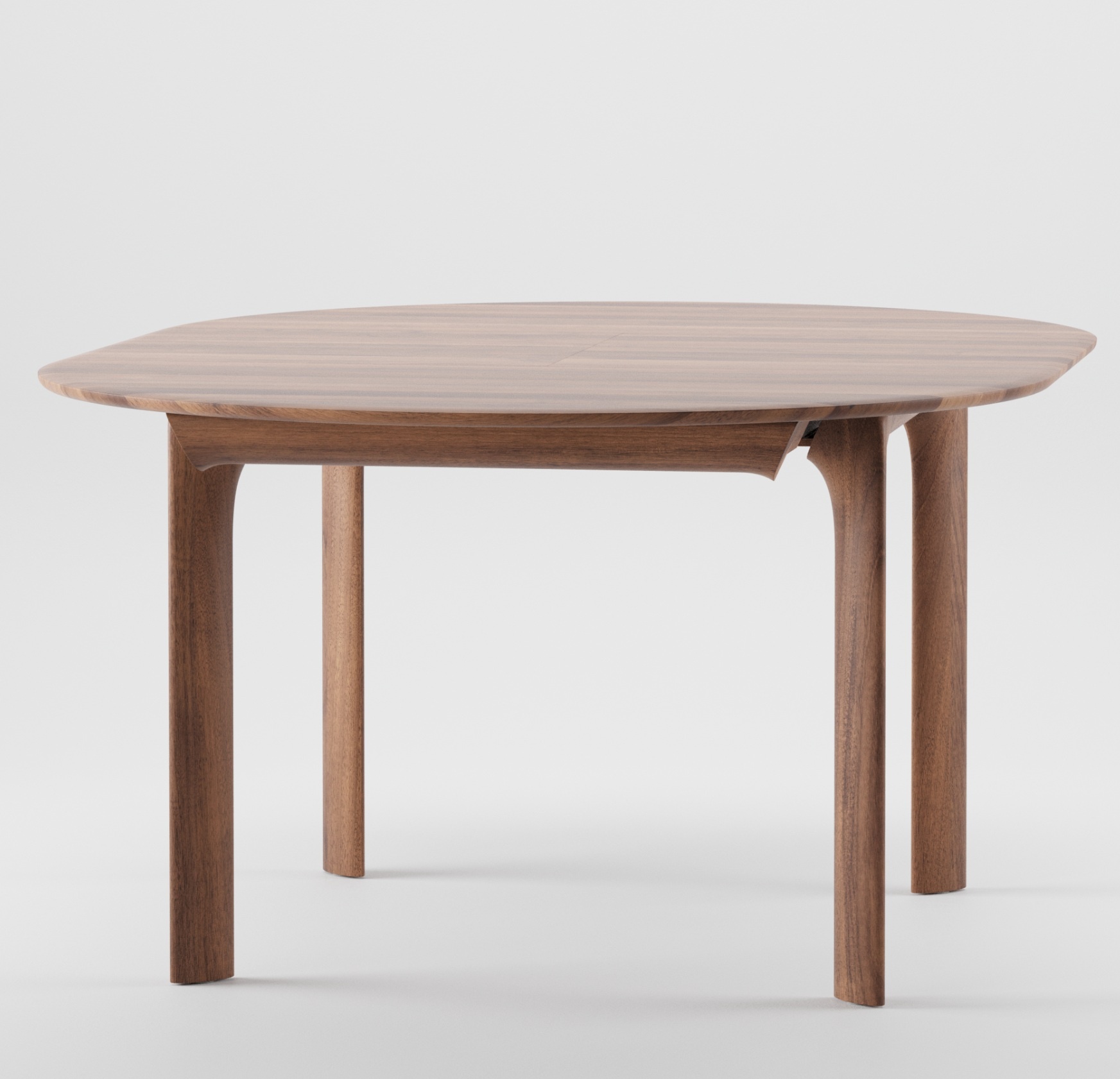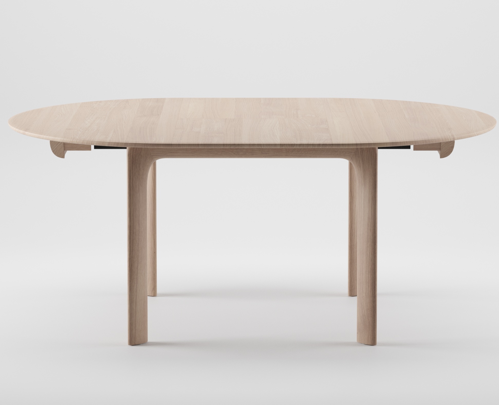 De Fin uittrektafel combineert op meesterlijke wijze verfijnd design met alledaagse functionaliteit. De ronde vorm zorgt voor een intieme setting voor dagelijkse bijeenkomsten, terwijl het soepele, intuïtieve verlengmechanisme ervoor zorgt dat de tafel moeiteloos kan worden uitgebreid voor speciale gelegenheden, zonder de harmonieuze vorm te verstoren. Ontworpen met zowel comfort als elegantie in het achterhoofd, zijn de poten discreet naar buiten gekanteld onder het tafelblad, wat zorgt voor maximale beenruimte en een gevoel van visuele lichtheid. Het elliptische profiel van de tafel volgt een zachte, organische vloeiing, alsof hij door de natuur zelf gevormd is, wat hem een sculpturale aanwezigheid en een tijdloos, ingetogen karakter geeft. Met zijn zachte contouren en doordachte details is de Fin tafel meer dan alleen aanpasbaar, het is een blijvend middelpunt dat evolueert met uw behoeften terwijl het trouw blijft aan zijn elegante ontwerp.