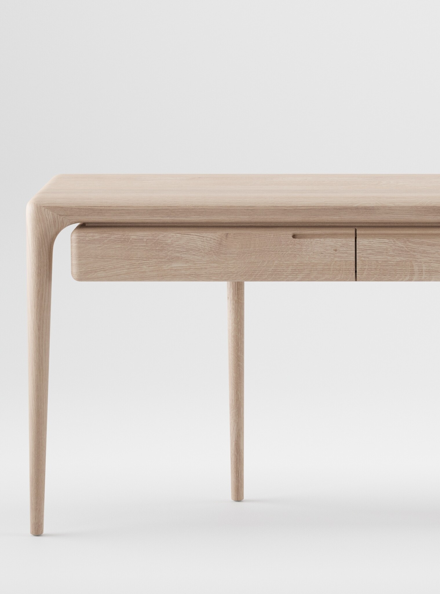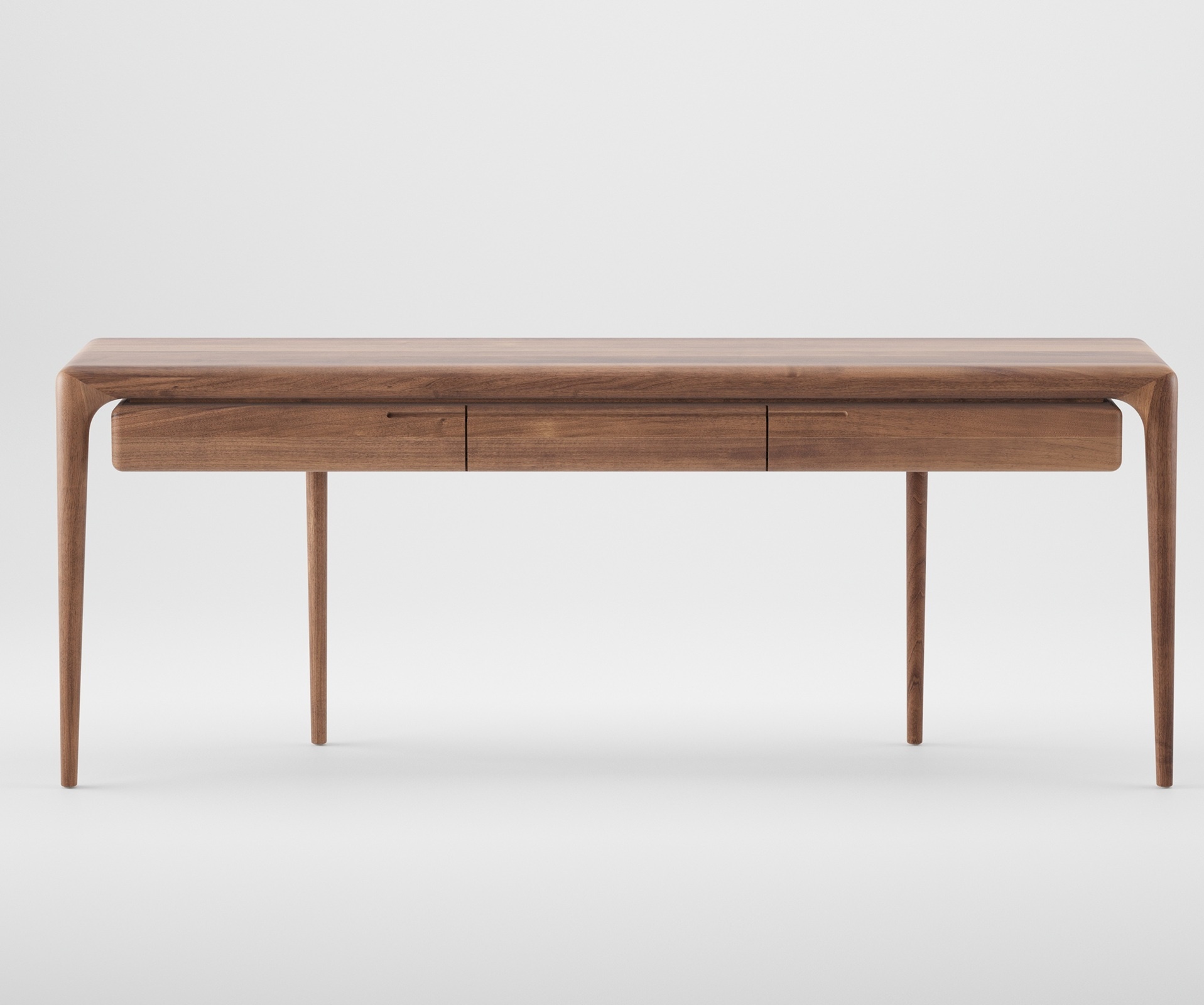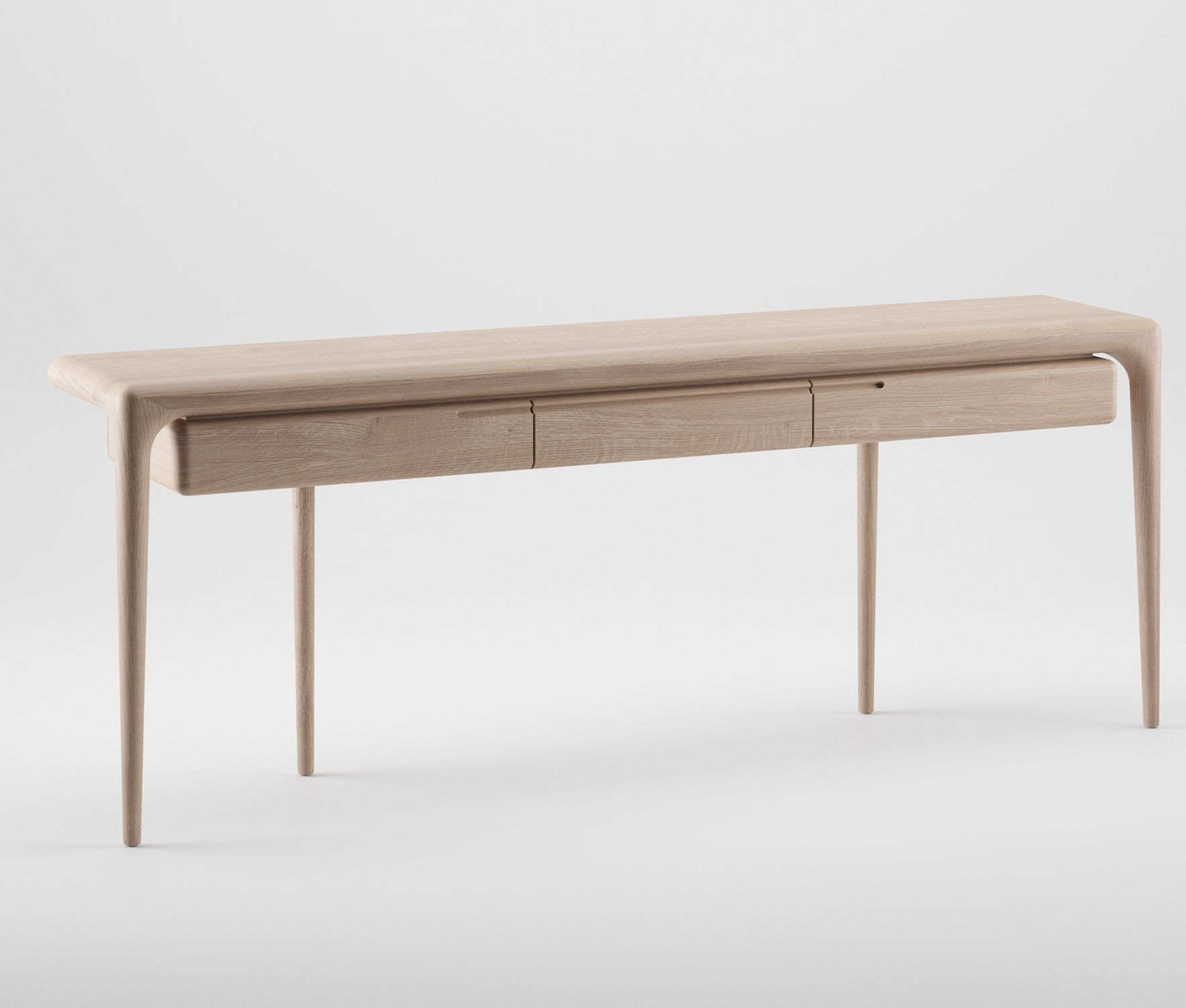 Rustige lijnen van uiterst fijn vakmanschap benadrukken de schoonheid van het materiaal en roepen een continue stroom op door meesterlijk zachte overgangen, waardoor een functionele en toch sculpturale kwaliteit ontstaat. Het resultaat zijn uitzonderlijk zuivere vormen die elkaar overspoelen, buigen en dunner worden, waardoor de flexibiliteit en schoonheid van een massief materiaal zichtbaar wordt. De Latus dressoir collectie is doordrongen van herkenbare elementen van de houders, de verticalen verbonden door fijne horizontale lijnen. De schoonheid van het ontwerp wordt nog geaccentueerd door het begrip van de grondstof, door de structuur van het hout te respecteren en visueel te onderstrepen, waardoor een unieke kwaliteit van esthetiek en een elegante structuur ontstaat.