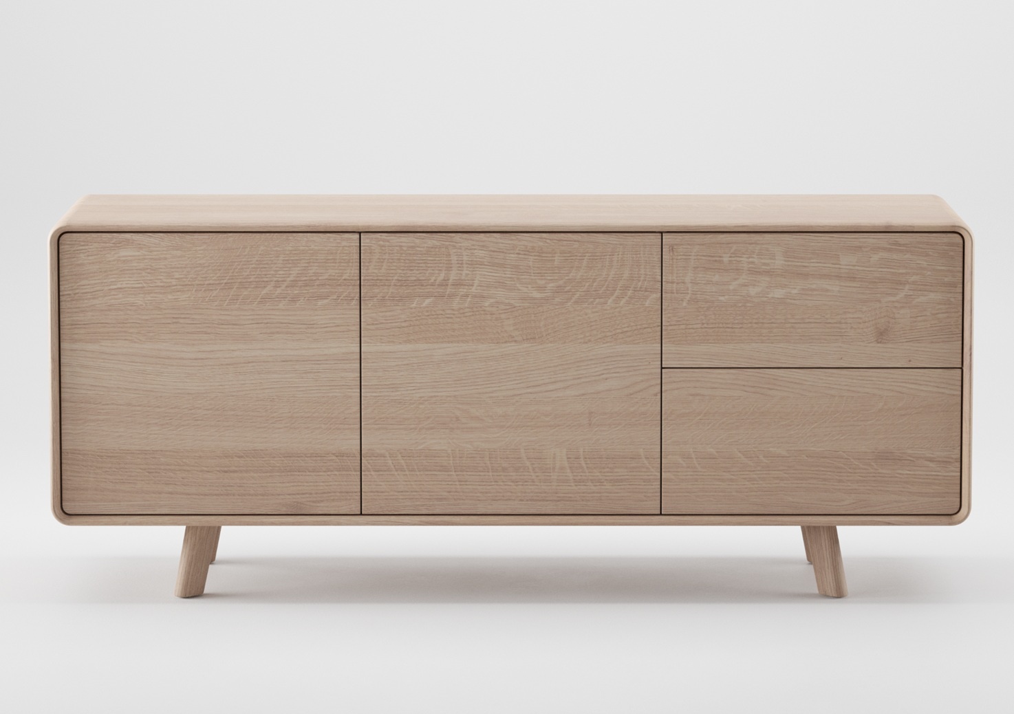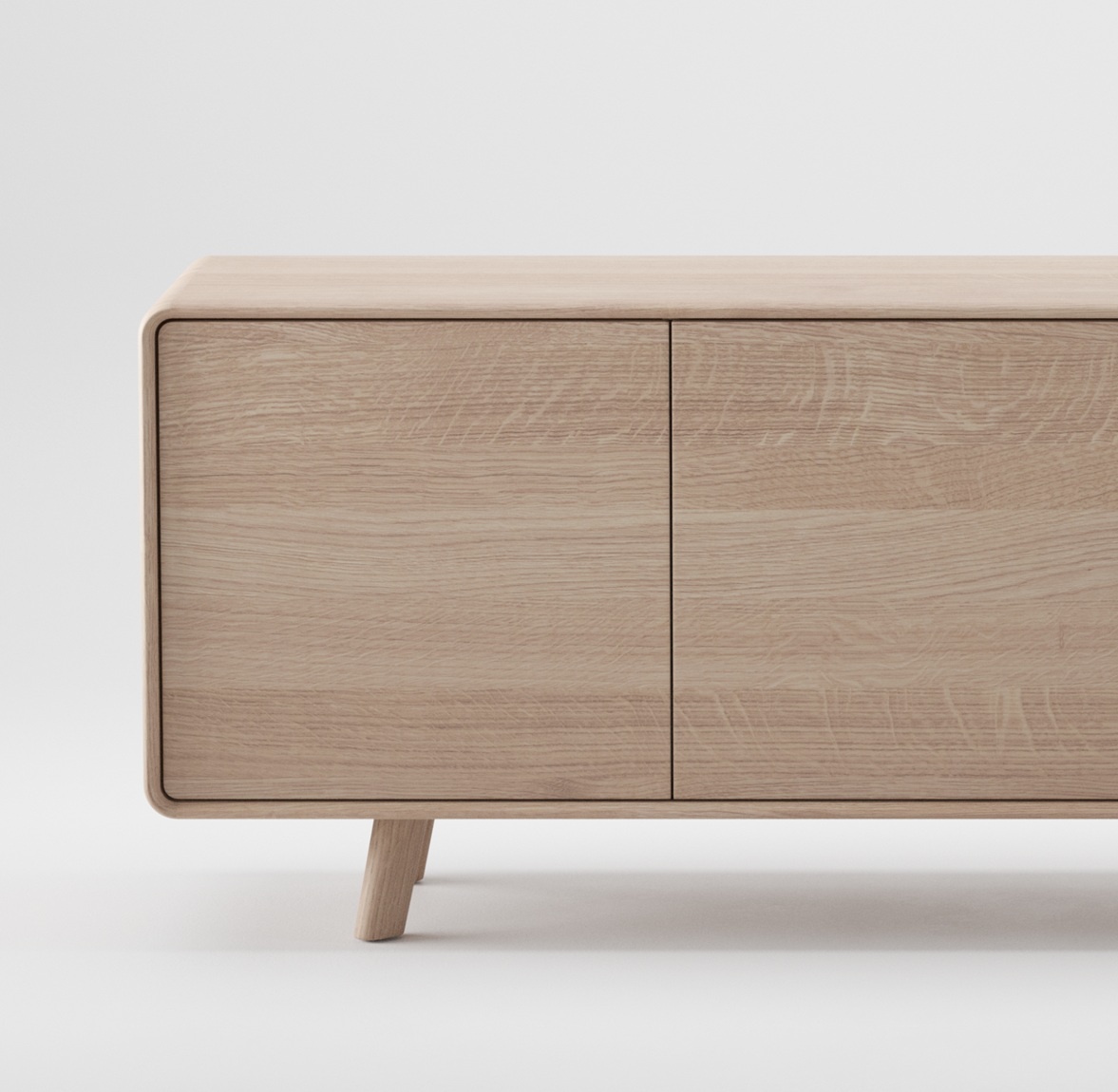 De Neva houten kast met deuren van Artisan: Een doorlopende stroom van zachte lijnen definieert elegante units; het respecteert ergonomie en rondt op verfijnde wijze een ingetogen maar herkenbare esthetiek af. Net als bij een lettertype komen bepaalde elementen terug in variaties van duidelijk gedefinieerde kenmerkende eigenschappen, karakteristieke lijnen waarvan de zachte houtlijnen de gewenste vorm tekenen en zich aanpassen aan het gebruik door de lijnstroom te veranderen. Variaties in zitmeubilair worden aangevuld met praktische kasten, die allemaal subtiel met elkaar verbonden zijn door een gemeenschappelijke esthetiek, waardoor een aangename sfeer kan worden gecreëerd met vergelijkbare elementen. Dankzij hun onopvallende schoonheid passen de elementen uit de Neva-collectie gracieus in reeds bestaande interieurs en passen ze zich daaraan aan, waardoor ze deze verfijnen zonder hun onderscheidende karakter te verliezen.