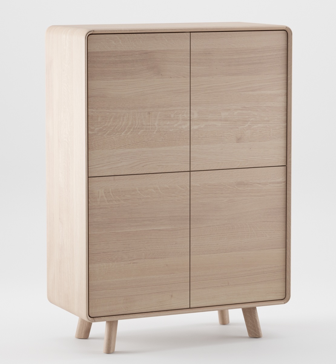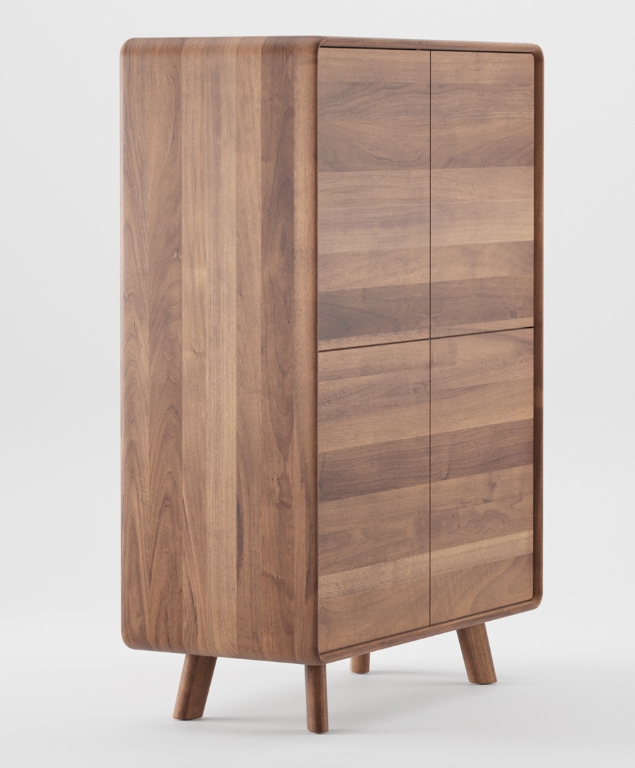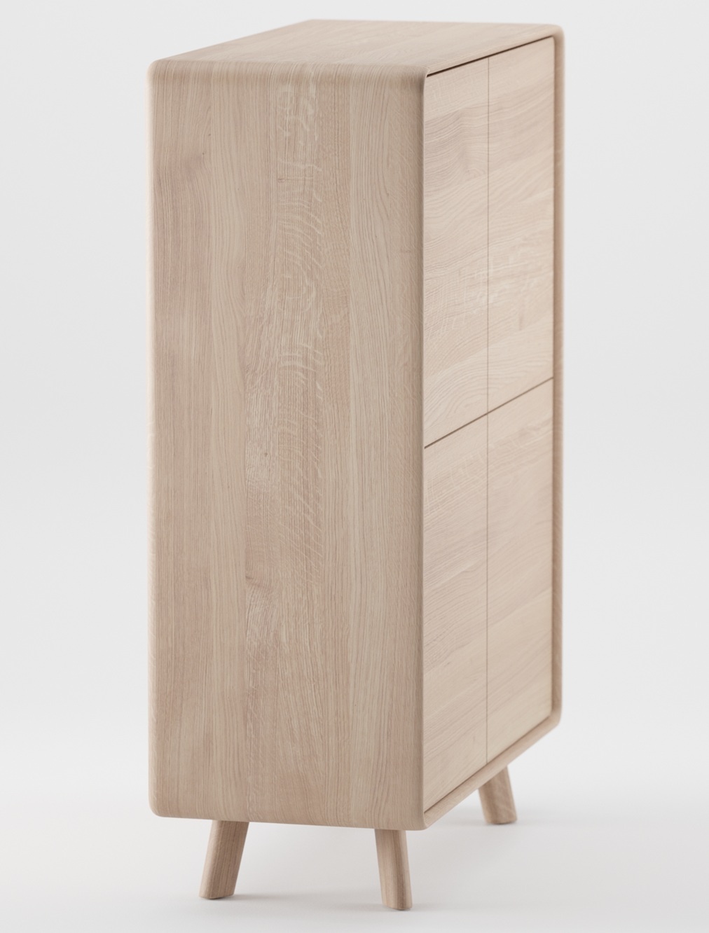 De Neva houten kast met deuren van Artisan: Een doorlopende stroom van zachte lijnen definieert elegante units; het respecteert ergonomie en rondt op verfijnde wijze een ingetogen maar herkenbare esthetiek af. Net als bij een lettertype komen bepaalde elementen terug in variaties van duidelijk gedefinieerde kenmerkende eigenschappen, karakteristieke lijnen waarvan de zachte houtlijnen de gewenste vorm tekenen en zich aanpassen aan het gebruik door de lijnstroom te veranderen. Variaties in zitmeubilair worden aangevuld met praktische kasten, die allemaal subtiel met elkaar verbonden zijn door een gemeenschappelijke esthetiek, waardoor een aangename sfeer kan worden gecreëerd met vergelijkbare elementen. Dankzij hun onopvallende schoonheid passen de elementen uit de Neva-collectie gracieus in reeds bestaande interieurs en passen ze zich daaraan aan, waardoor ze deze verfijnen zonder hun onderscheidende karakter te verliezen.