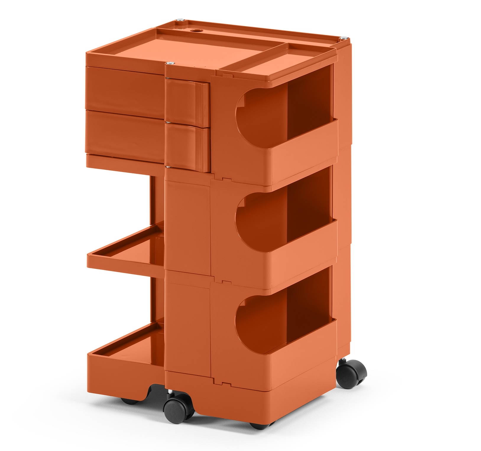 De Boby ladewagen van B-Line is veel meer dan een eenvoudig opslag meubel: het is de trolley die design geschiedenis maakte. Ontworpen door Joe Colombo en in 1970 gelanceerd, werd bekroond met de eerste prijs op SMAU in 1971 en is onderdeel van de permanente collectie van zowel het MoMA en de "Triennale" in Milaan. Ontworpen met spuit-gegoten ABS kunststof lades en vakken die eenvoudige verticaal modulaire oplossingen bieden. Boby biedt veelzijdige maat opslagcapaciteit, terwijl de polypropyleen wielen volledige mobiliteit garanderen. Deze handige opberg wagen of trolley is zeer geschikt voor bijvoorbeeld een kapsalon, of om gereedschap in op te bergen.