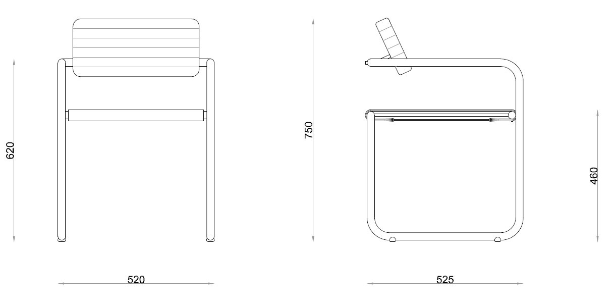 Afmetingen: 75 cm x 52 cm (h x b); zithoogte: 46 cm.