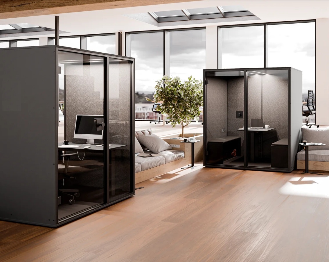 Open kantoren betekenen meer ruimte, meer licht, meer vrijheid en ... meer lawaai in de werkomgeving. Elke dag worden werknemers geconfronteerd met toenemende uitdagingen bij het vinden van een rustige plek om vergaderingen te houden, telefoongesprekken te voeren of gewoon te focussen op individueel werk. "Een kamer in een kamer" is een eenvoudige manier om geluidsafleidingen op afstand te houden en de productiviteit van medewerkers te verhogen.