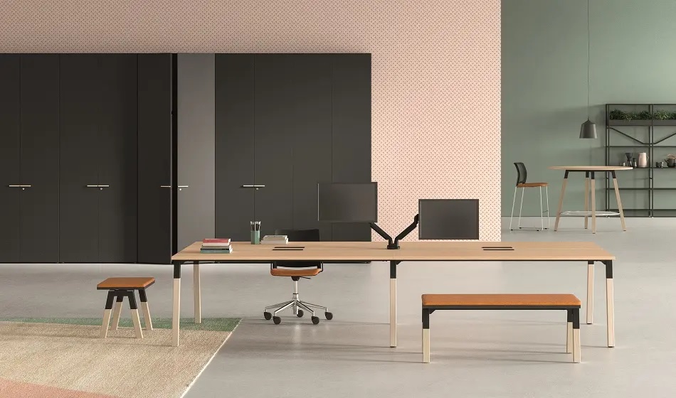 Het Polare modulaire bureau met aanhechtend dressoir van Bralco is een lust voor het oog, waarmee u een woon-, werk- en co-working omgevingen kunt creëren. Door de vele kleurcombinaties zal het bureau zich aanpassen aan zijn omgeving, of dit nu thuis of op kantoor is. Daarmee creëert u een ontspannen werkplek en zullen inzet en prestatie een vloeiende opwaartse lijn hebben.