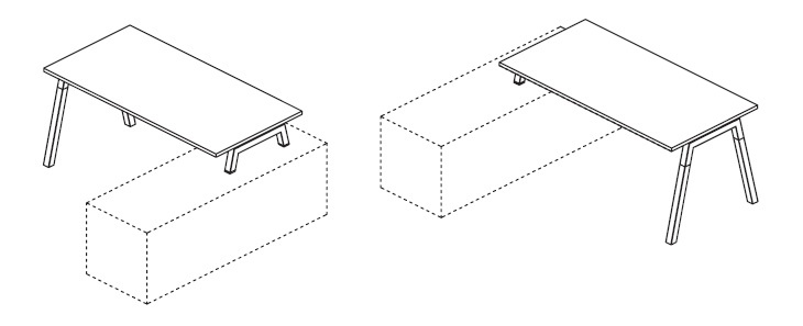 Het Polare bureau is een modulair systeem waarbij het dressoir rechts of links aangehecht kan worden. Het bureau is 140, 160, 180 of 200 cm lang en 80 cm breed. De tafel heeft een werkhoogte van 74 cm. De poten zijn altijd van hout en aan de bovenkant van metaal welke vloeiend overgaat in de onderzijde van het werkblad. Verkrijgbaar in zwart of wit. Het blad is leverbaar in 6 verschillende kleuren.