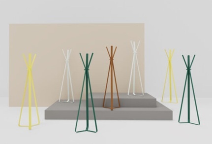 De Cascando Bend design kapstok bestaat uit gebogen metalen staanders die op fraaie wijze samenkomen. Jassen worden over het zorgvuldig afgeronde uiteinde van de strip gehangen of aan de gepolijste aluminium knoppen waarmee de staanders zijn verbonden. Een subtiel koppeldetail op de bodem brengt ook hier de staanders harmonieus bij elkaar. Bend is verkrijgbaar in fris wit, basic bruin, tra vrolijk geel, donkergroen en antraciet grijs.