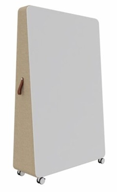 De whiteboards zijn uitgerust met een hoogwaardige geëmailleerde staalplaat en zijn verkrijgbaar in twee breedtes: 90 cm en 120 cm. Ze zijn geschikt voor magnetische accessoires. De gestoffeerde panelen absorberen geluid maar zorgen ook voor visuele privacy. Uitgerust met een leren handvat en vergrendelbare wielen, verplaatst hij zich naar waar je hem nodig hebt. Whiteboard aan de achterkant. Een vilten zak voor het opbergen van markeerstiften is tevens inbegrepen.