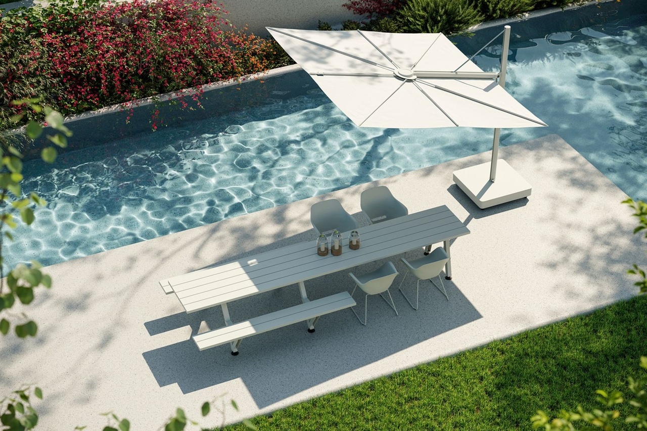 Extremis Marina Combo: een tafel die even lang kan zijn als je gastenlijst of kort genoeg voor een gezin van vier: de Marina werd ontworpen voor zowel intieme bijeenkomsten als grote vergaderingen. Deze tafel is de ultieme plek voor een goed gesprek. De Marina Combo is de perfecte weerspiegeling van de filosofie van Extremis met zijn ‘Tools for Togetherness’ en is daarmee de ideale oplossing voor horeca, bedrijfsruimte of welke outdoor oplossing dan ook.