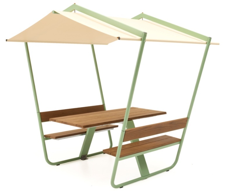 De vaste banken zorgen voor een ordelijk geheel, terwijl de lichte helling de tafel extra comfortabel maakt. Het vrolijke ontwerp van Manille is beschikbaar in verschillende kleuren, zodat je je eigen, gezellige stempel kunt drukken op vrijwel elke (buiten)ruimte. De dakvormige ‘Fixed Shade’ zorgt ten allen tijde voor bescherming tegen te felle zon en natuurlijk ook de vervelende nattigheid van regen. Deze parasol hoef je trouwens niet te sluiten of binnen te halen – deze kan permanent buiten blijven, mits het meubel in z’n geheel aan de grond verankerd wordt.