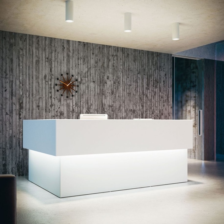 De Quaranta5 ontvangstbalie wordt gekenmerkt door de 45 graden schuine randen van de zij- en topbladen. Alle balies zijn uitgevoerd met fluorescente verlichting welke een diffuus licht geeft door de witte transparante plexiglas afdekking. De werkbladen zijn voorzien van kabeldoorvoer voorzieningen, het topblad voor de bezoekers is 35 cm diep.