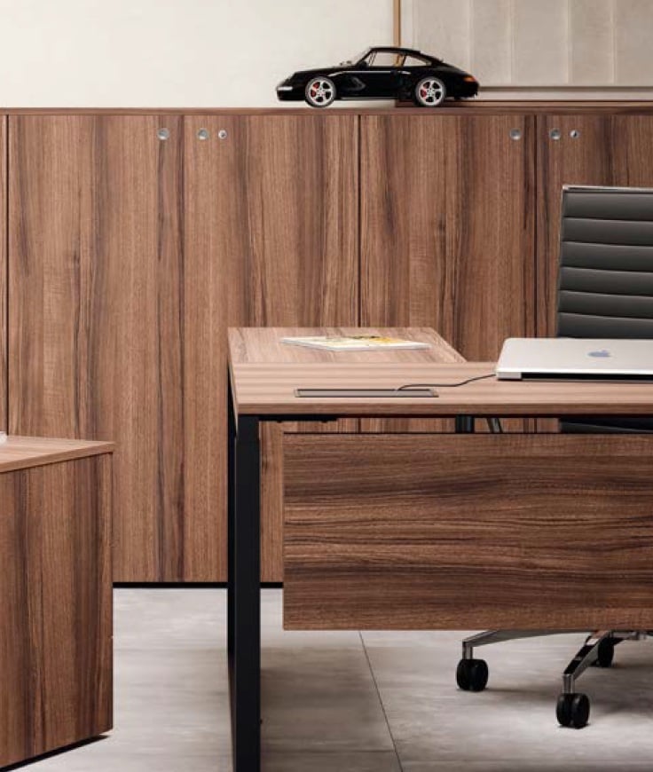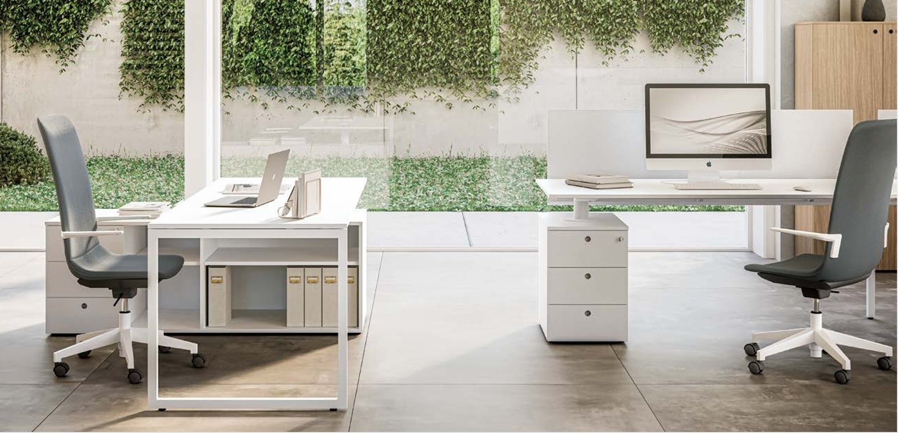 Met verschillende opties voor de bureaus en tal van accessoires en afwerkingen, kunt u zowel enkele als dubbele werkplekken voor medewerkers en leidinggevenden en vergaderruimtes creëren, terwijl u esthetische continuïteit en comfort in elke omgeving waarborgt.