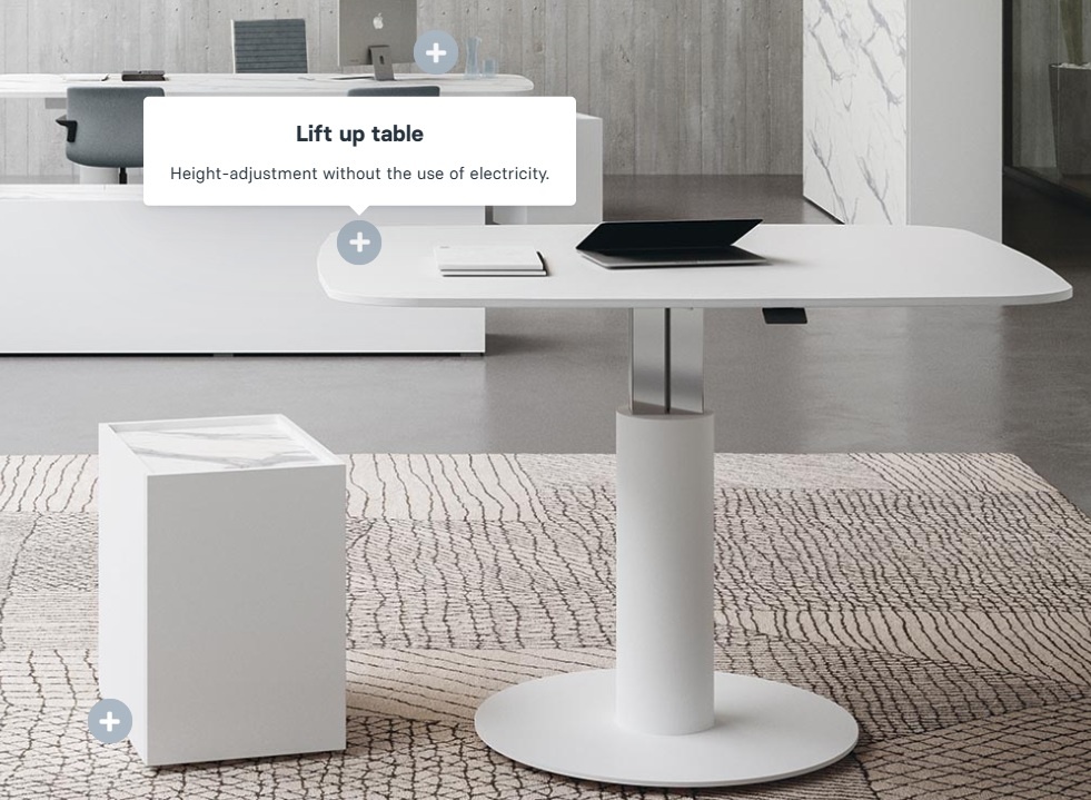 De Meet Up vergadertafel van Fantoni weerspiegelt een verschuiving van de traditionele executive omgeving en wordt steeds minder individueel en meer en meer gericht op vergaderingen, met een hernieuwde roeping voor alles wat functioneel, essentieel en ecologisch is, dankzij het gebruik van duurzame en recyclebare materialen.