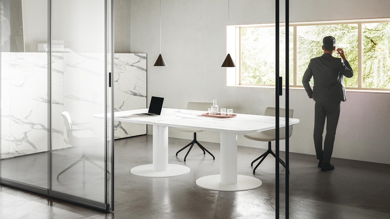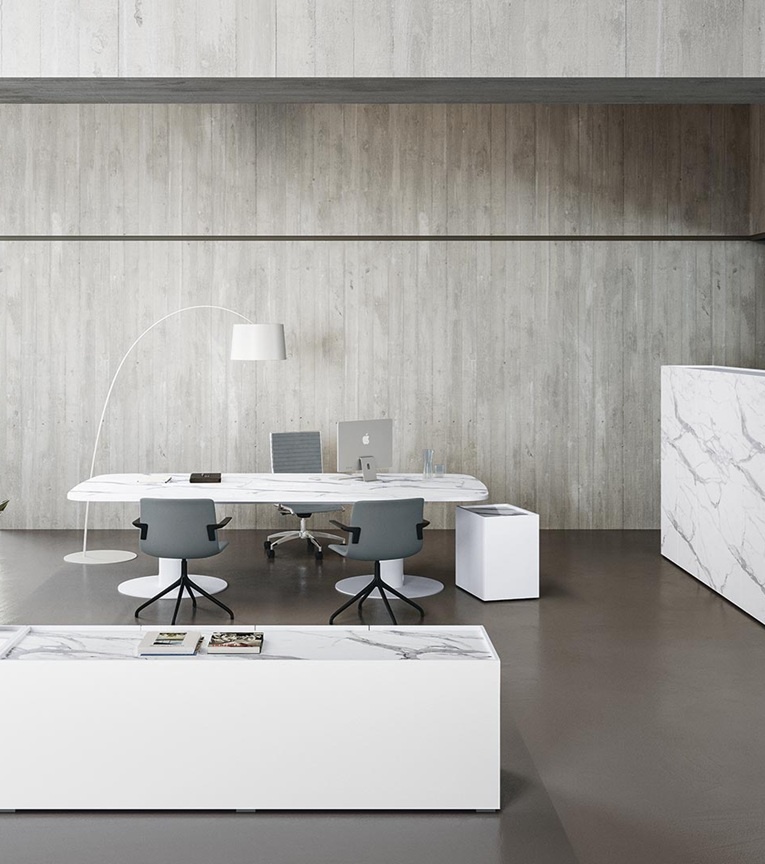 Met hun zeer iconische karakter vervagen de vergadertafels de verschillen tussen directie-, vergaderruimten, waardoor het concept van gehybridiseerde ruimtes wordt geconsolideerd.