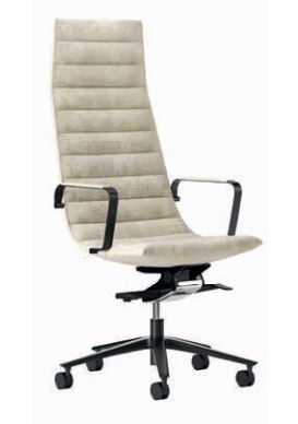 Bij de Frezza Key directiestoel komt comfort en elegantie samen in de grote, uit één stuk bestaande zitting, opgevuld met koudgeschuimd polyurethaan en bekleed met een breed scala aan stoffen, leersoorten en eco-leersoorten. Horizontale stiksels worden in een parallel patroon herhaald langs het profiel van de zitting, waardoor deze een verfijnde en toch moderne uitstraling krijgt.
