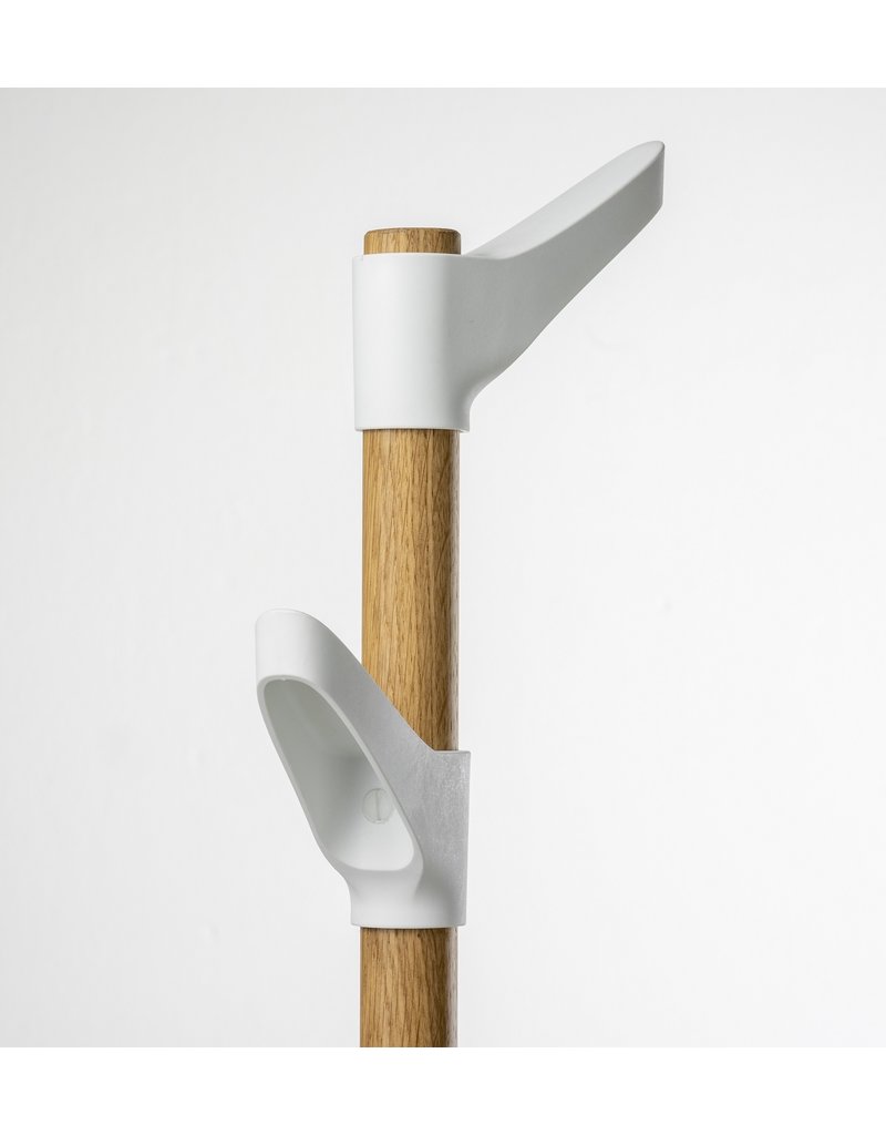 De Slide G Wood kapstok is verkrijgbaar met één, twee of drie eikenhouten kolommen. De zes haken zijn op verschillende hoogtes te bevestigen. De kolom van eikenhout vormt een onweerstaanbare combinatie met de witte voet van gepoedercoat staal. De hoogte van de kapstok is 171 cm. De voet heeft een breedte van 30 cm tot 85 cm bij het grootste model. Per staander kunnen er 6 jassen worden opgehangen.