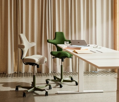 Op de Capisco bureaustoel van HAG kan normaal, of achterstevoren worden gezeten. De Capisco stoel is leverbaar in 15 standaard kleuren. Maar optioneel ook leverbaar in andere stoffen en talloze kleuren (tegen meerprijs).