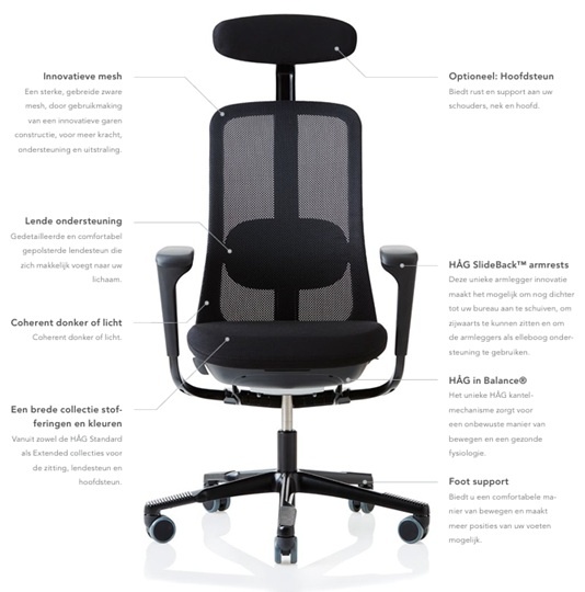 Er zijn heel veel redenen waarom een HÅG Sofi stoel voor u de beste keuze is. Al onze stoelen zijn ontworpen voor het stimuleren van beweging en variatie op de werkplek, zonder dat de gebruiker