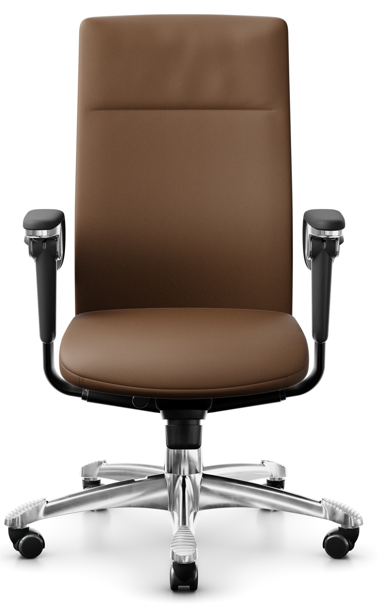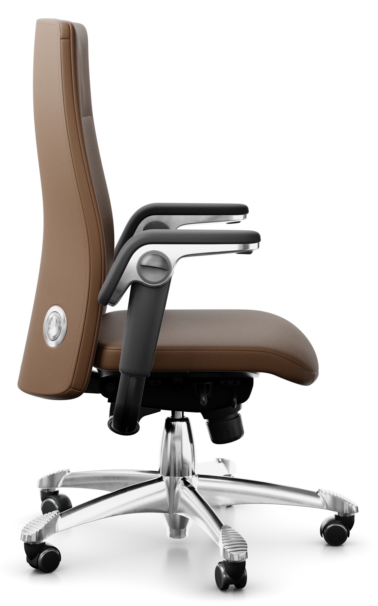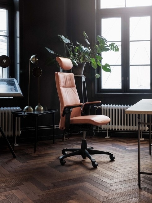 De volledig geïntegreerde lendesteun is eenvoudig te personaliseren. Met de slimme HÅG TiltDown™ armleggers met zwarte lederen soft tops als standaard - kunt u dichter aan uw bureau aanschuiven. De zithoogte en diepte zijn verstelbaar, en de schommelweerstand kunt u aanpassen en vastzetten.