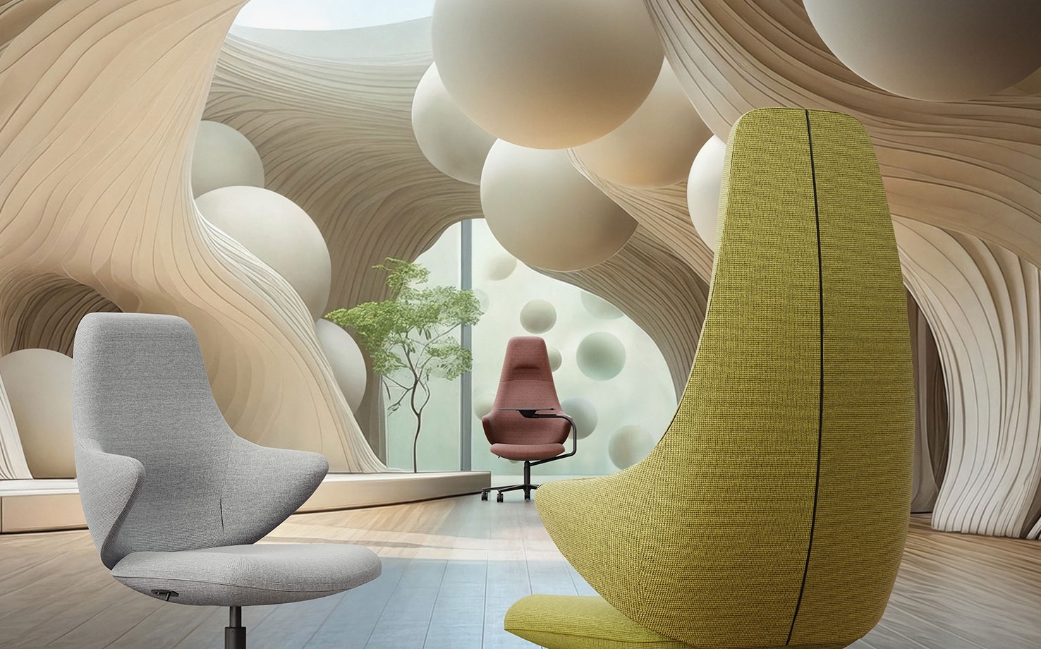 De stoel is opgebouwd rond een houten zit schaal die volledig is gestoffeerd. Standaard wordt de stoel geleverd met een vergrendelbaar kantelmechanisme en uiteraard zithoogte instelling.