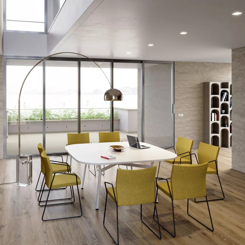Deze tafel is bij uitstek geschikt als vergadertafel, maar zeker ook als eettafel. De tafel is leverbaar in twee maten: 120 x 120 cm en 160 x 160 cm. De vaste werkhoogte van deze tafel is 74 cm.
