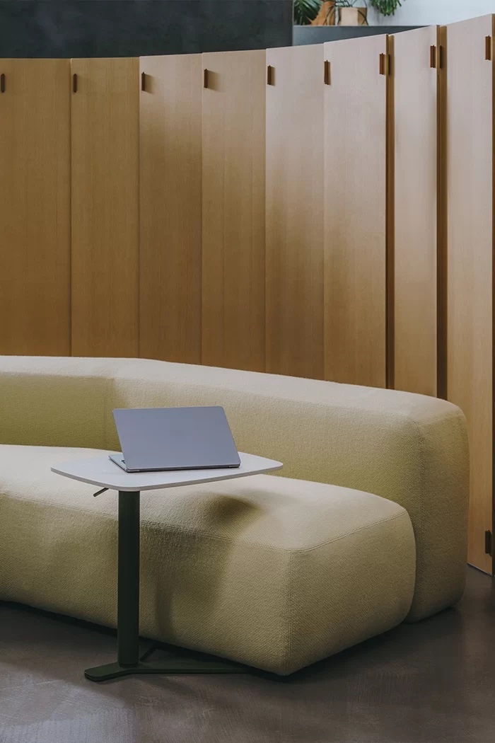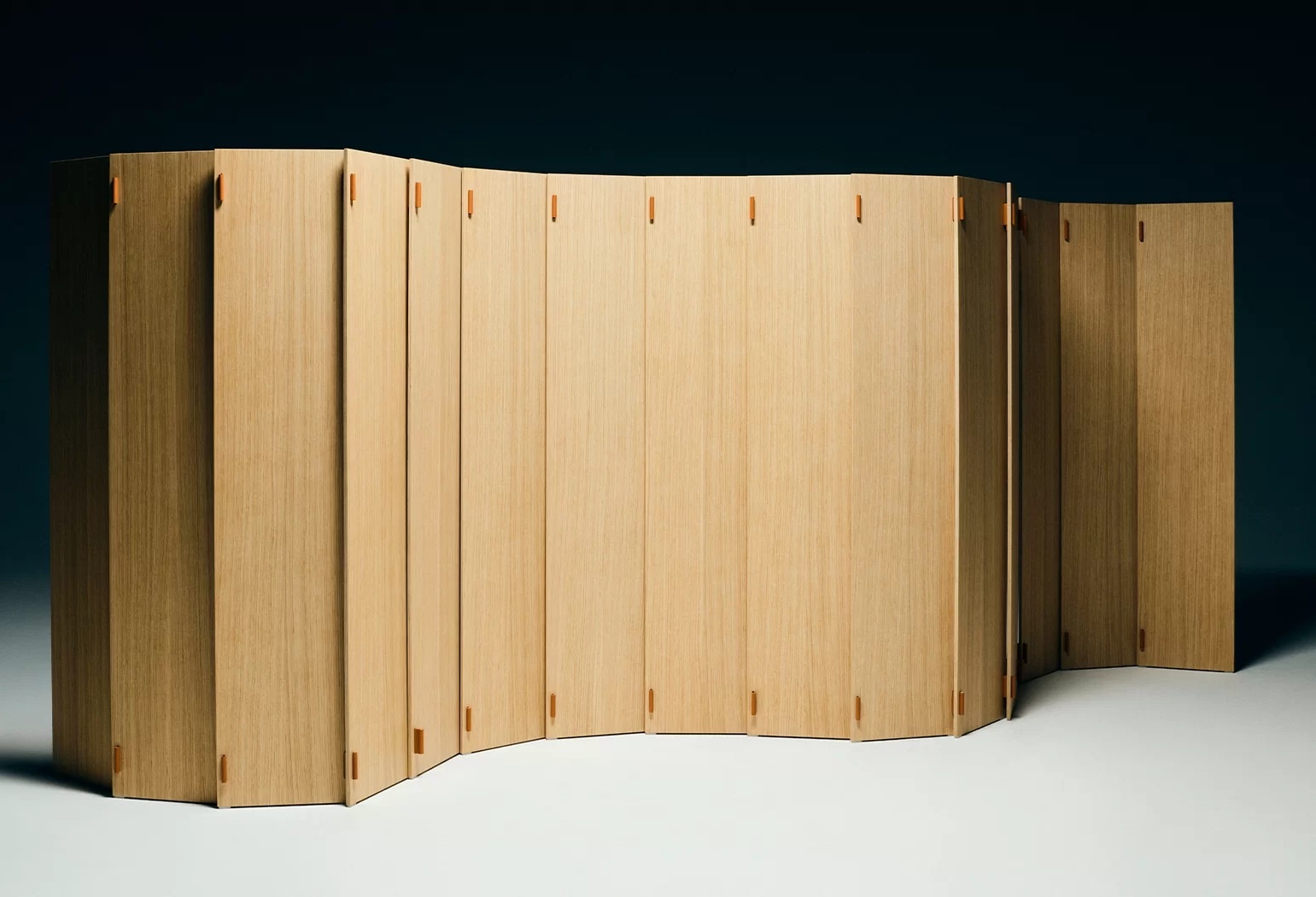 De WOD houten roomdivider van het Italiaanse designmerk Lapalma bestaat uit een reeks houten elementen die met leren scharnieren aan elkaar zijn bevestigd, waardoor deze naadloos kan worden aangepast aan een lineaire of gebogen configuratie. Het ontwerp is zeer eenvoudig, maar deze eenvoud is niet het uitgangspunt, maar het resultaat van de nauwgezette inspanningen van ontwerpster Raffaella Mangiarotti en het bedrijf om de complexiteit ervan te verminderen.