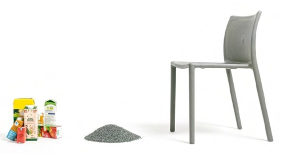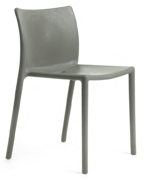 Bijzonder is de laatste nieuwe toevoeging: de Magis RE Air-Chair, grijze uitvoering, die bestaat uit gerecycled polyolefinen. Dit betekent dat de stoel gerecycled is uit levensmiddelen verpakkingen en daarnaast versterkt is met glasfiber. Een mooie bijdrage aan het milieu en ons klimaat.