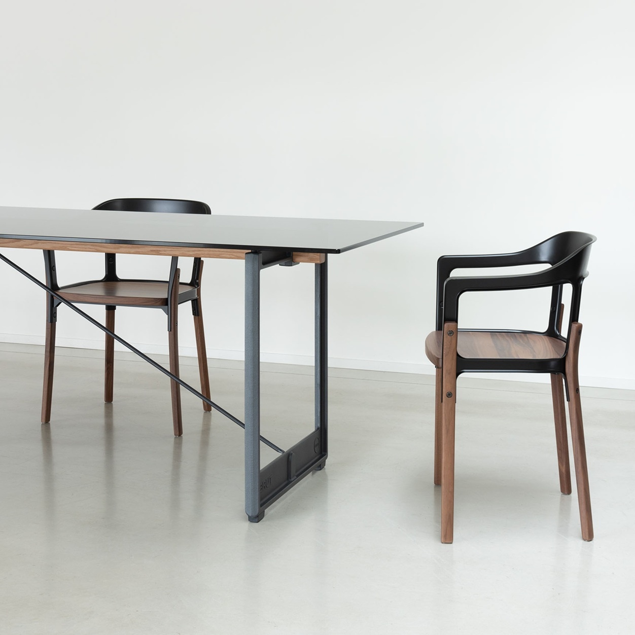De Magis Steelwood stoel is een veelzijdige stoel met armleggers. De Steelwood stoel is gemaakt van een combinatie van staal en beukenhout of walnoot. Het bijzondere aan de stoel is dat je goed kunt zien hoe hij in elkaar is gezet. Deze leuke details geven hem een speels uiterlijk. Doordat de stoel een heel goed zitcomfort biedt, is hij bij uitstek geschikt om wat langer op te zitten. Dit maakt hem tot een prima eetkamerstoel. Ook in uw horecagelegenheid is deze stoel een echte eye-catcher.