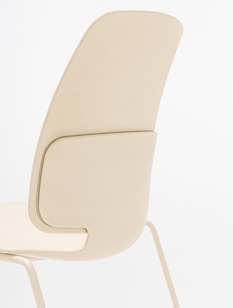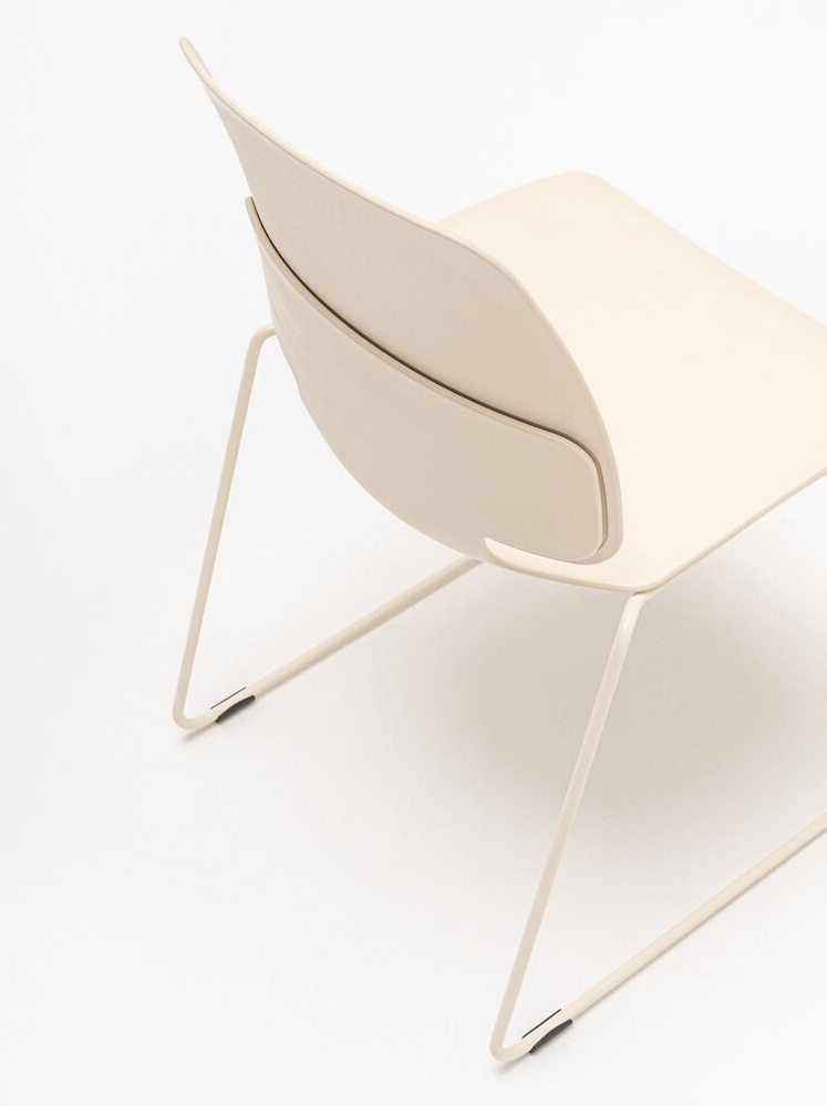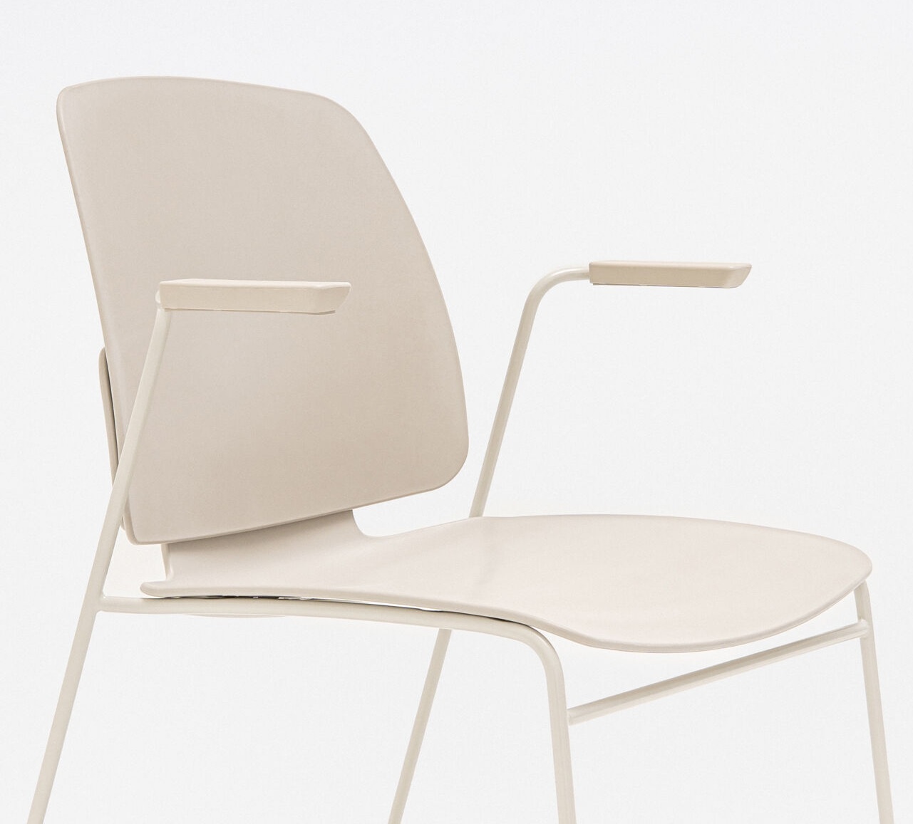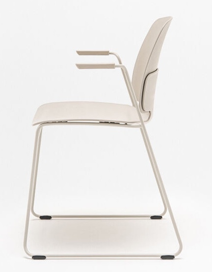 Deze designstoel is leverbaar met en zonder armleggers. Verder is de stoel stapelbaar. Minimum afname van deze stoel is 2 stuks.