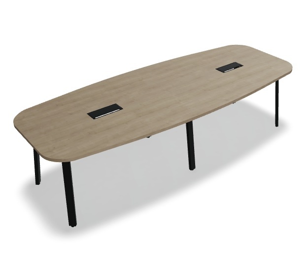 Deze OGI-A boot-vormige modulaire design vergadertafel van MDD bestaat uit drie of vier delen. Alle drie de delen hebben een lengte van 140 cm en een breedte van 110 cm. Om de tafel langer te maken kunnen meerdere losse delen tussen het begin en eind deel worden geplaatst. Op die manier kan een zeer lange vergadertafel worden gecreëerd. Het duurzaam gemaakte blad van krasvast melamine heeft een dikte van 28 mm en is anti-spiegelend. Optioneel zijn kabel voorzieningen toe te voegen, zoals een kabeldoorvoer of mediabox met 4x230V, 2xRJ45, 1xUSB aansluiting. En zeker de kabelgoot voor het netjes wegwerken van alle losse kabels onder het blad.