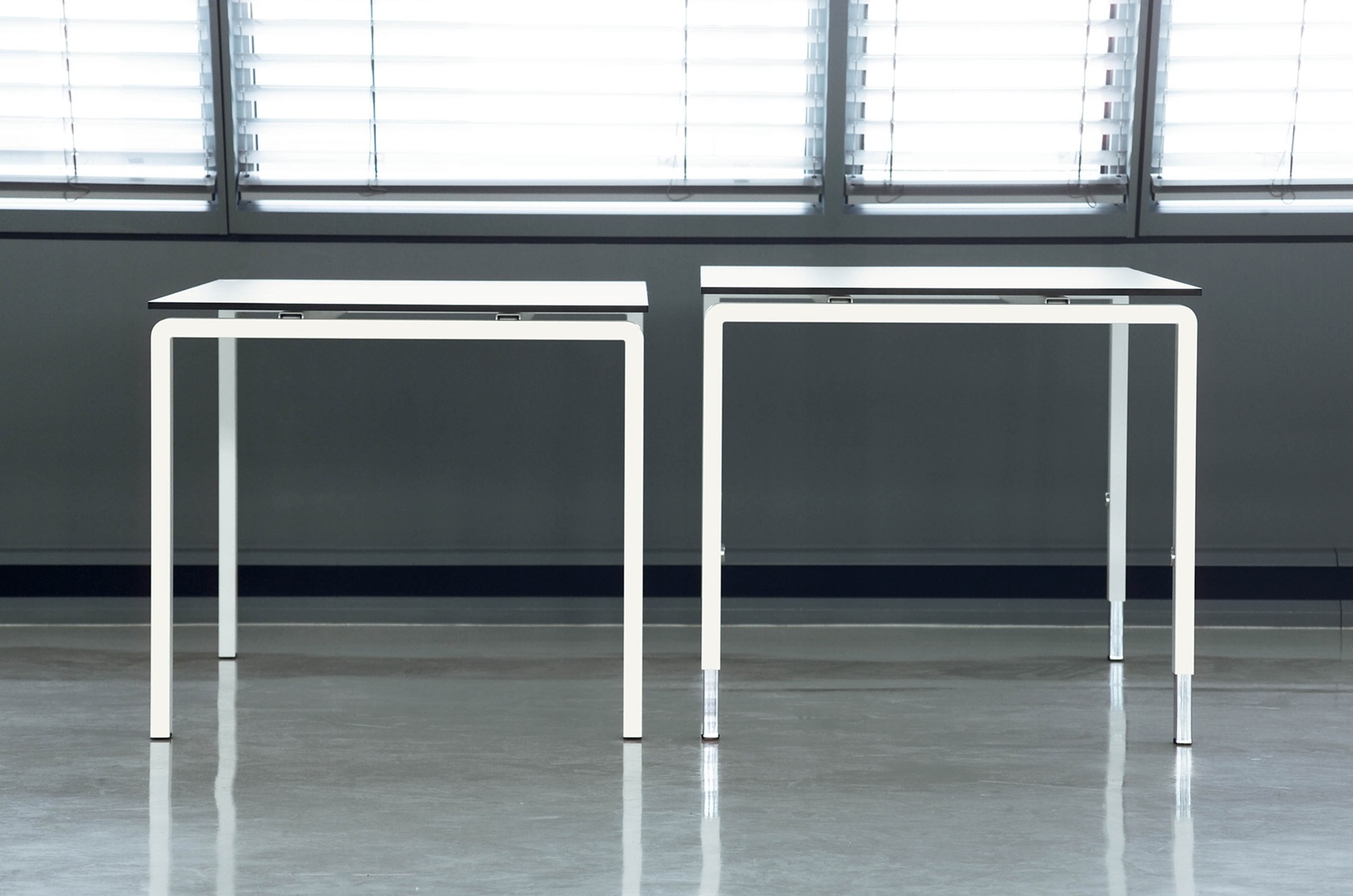 Hier bieden we het model met U-poot aan die in hoogte instelbaar is. De werkhoogte is in te stellen van 68 tot 82 cm. Ideaal voor lange mensen.