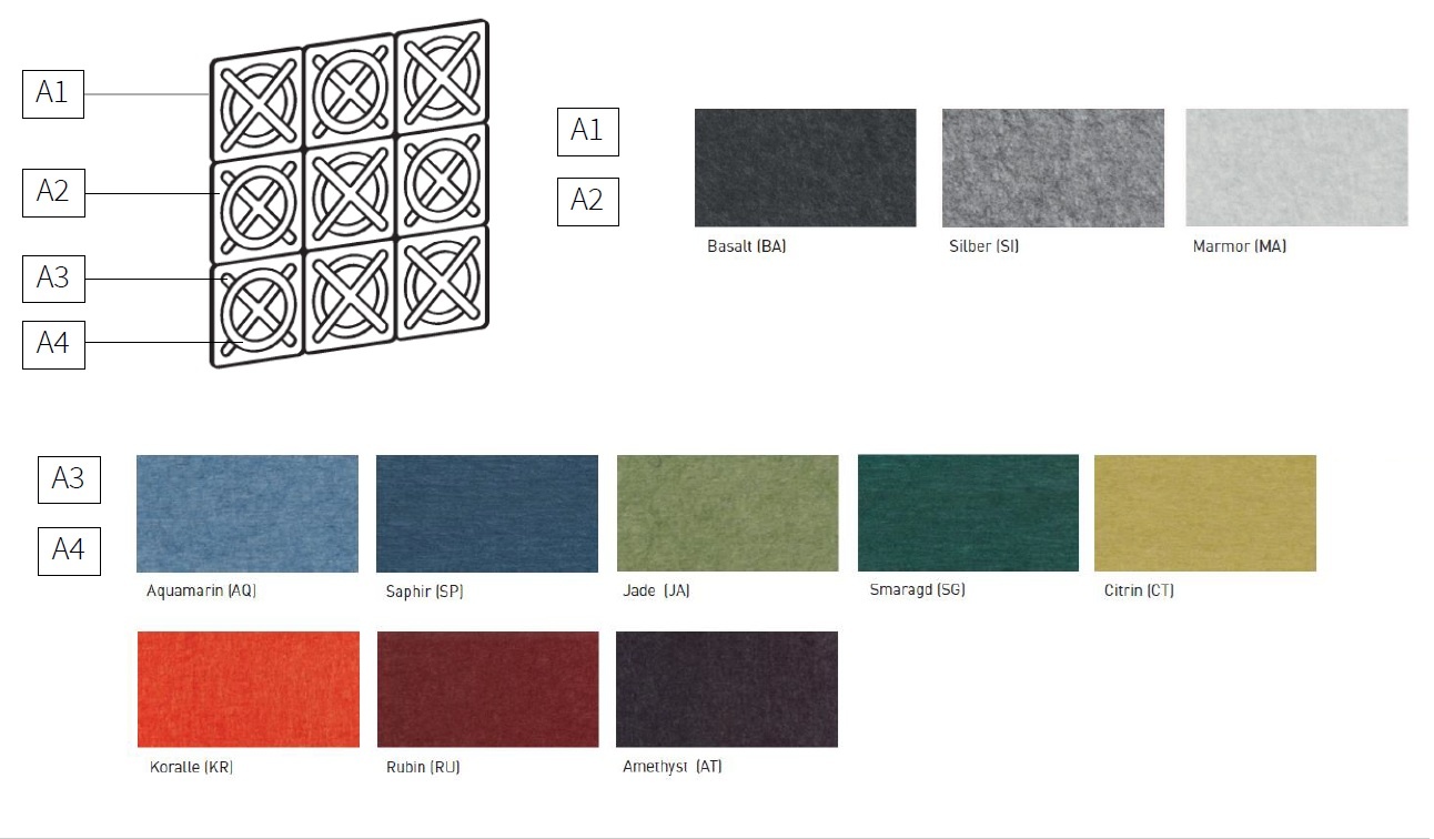 Het PHORMY akoestieke paneel van Palmberg wordt gekenmerkt door esthetiek en duurzaamheid in combinatie met goede geluidsabsorptie. De verschillende elementen bestaan uit 10 mm of 12 mm dikke polyestervezelplaten, die gemaakt zijn van thermisch en mechanisch versterkte vliesstoffen zonder chemische toevoegingen. Deze zijn lichtgewicht, robuust, slijtvast en vlam-vertragend. Afhankelijk van de uitvoering worden de polyestervezelpanelen in verschillende verhoudingen gemaakt van gerecyclede PET-flessen. De platen zelf zijn 100% zuiver en kunnen dus volledig worden gerecycled. De veiligheid voor de gezondheid wordt door de certificering Öko-Tex Standard 100 bevestigd. De 8 beschikbare kleurvarianten zorgen bovendien voor een aantrekkelijk en stijlvol uiterlijk.