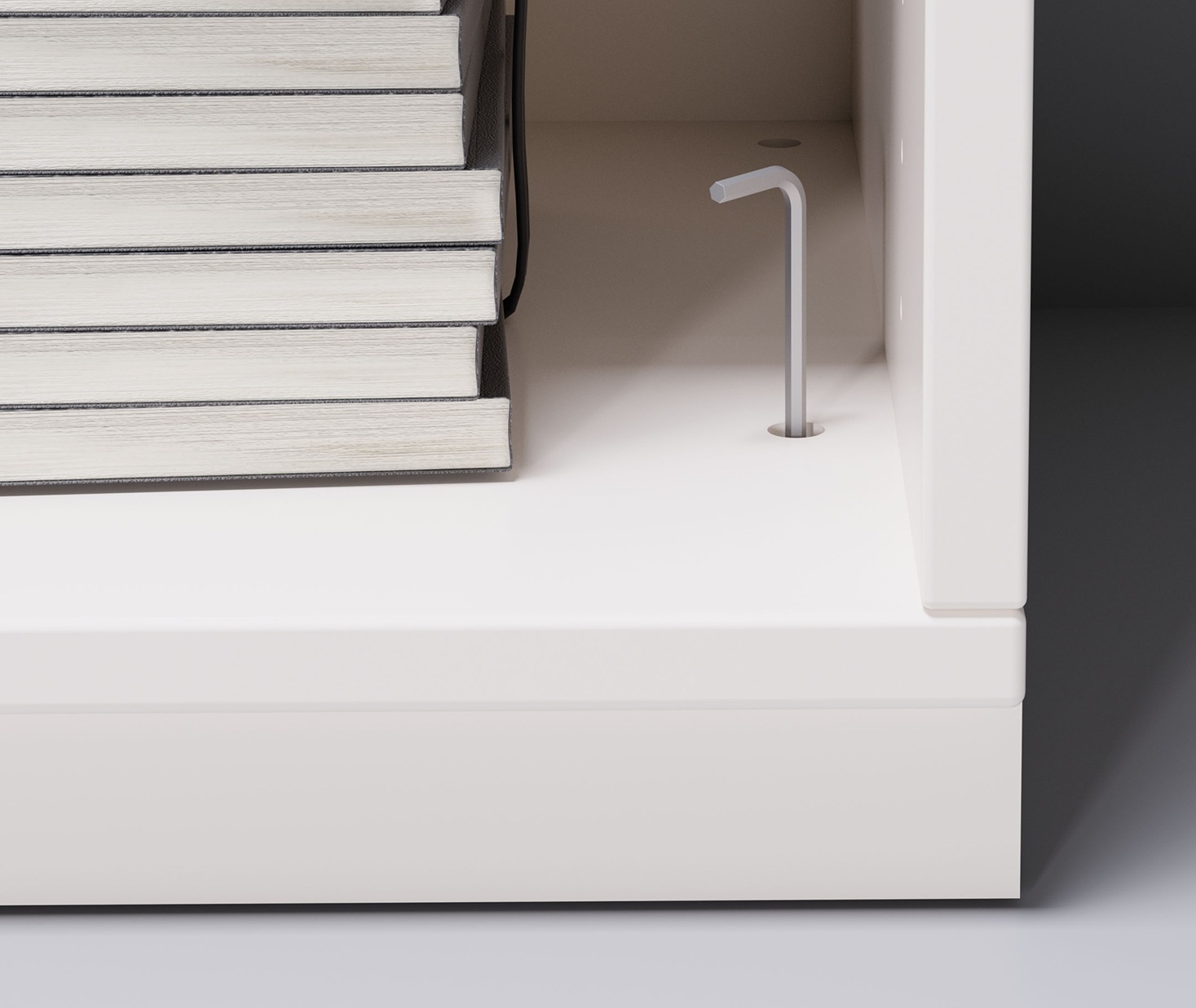 Een breed kleurenpalet en de mogelijkheid om diverse kleurconfiguraties te maken geeft een grote vrijheid bij het ontwerpen van het interieur. De kast is ook leverbaar in een houtfineer uitvoering. Neem hiervoor contact met ons op.