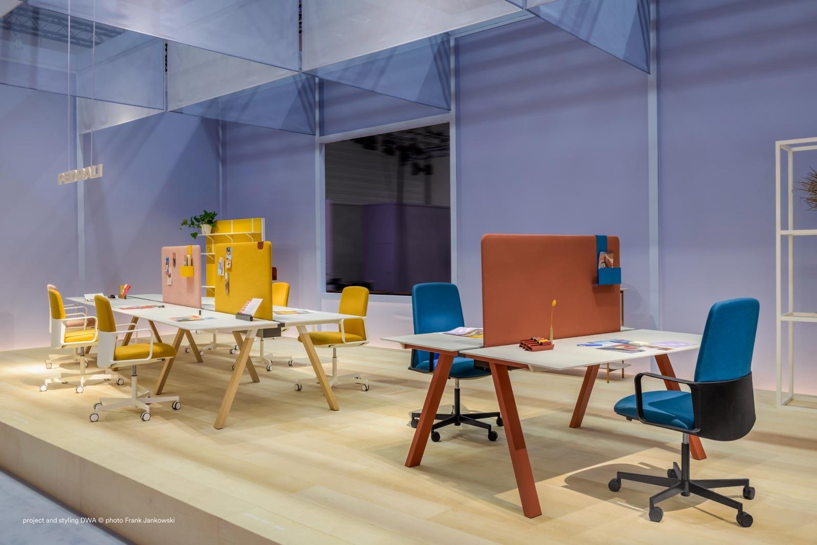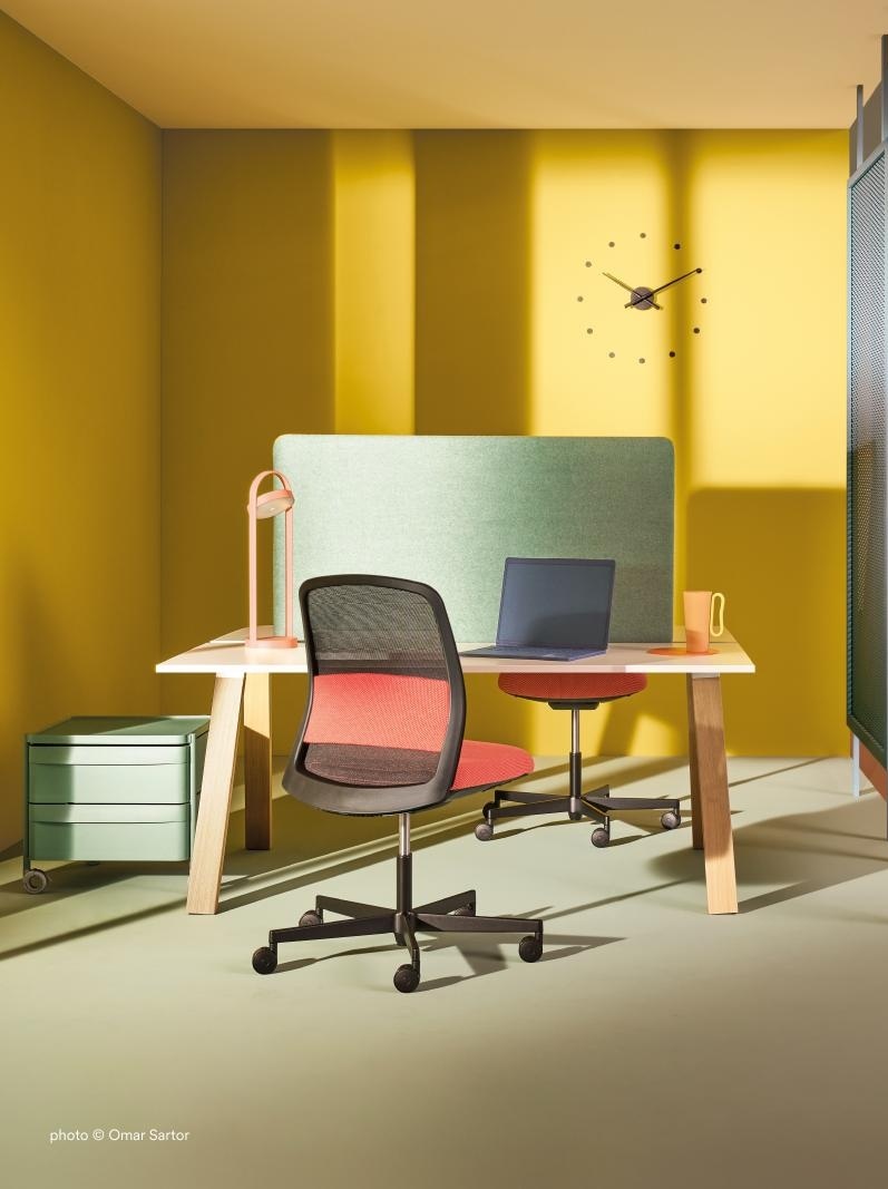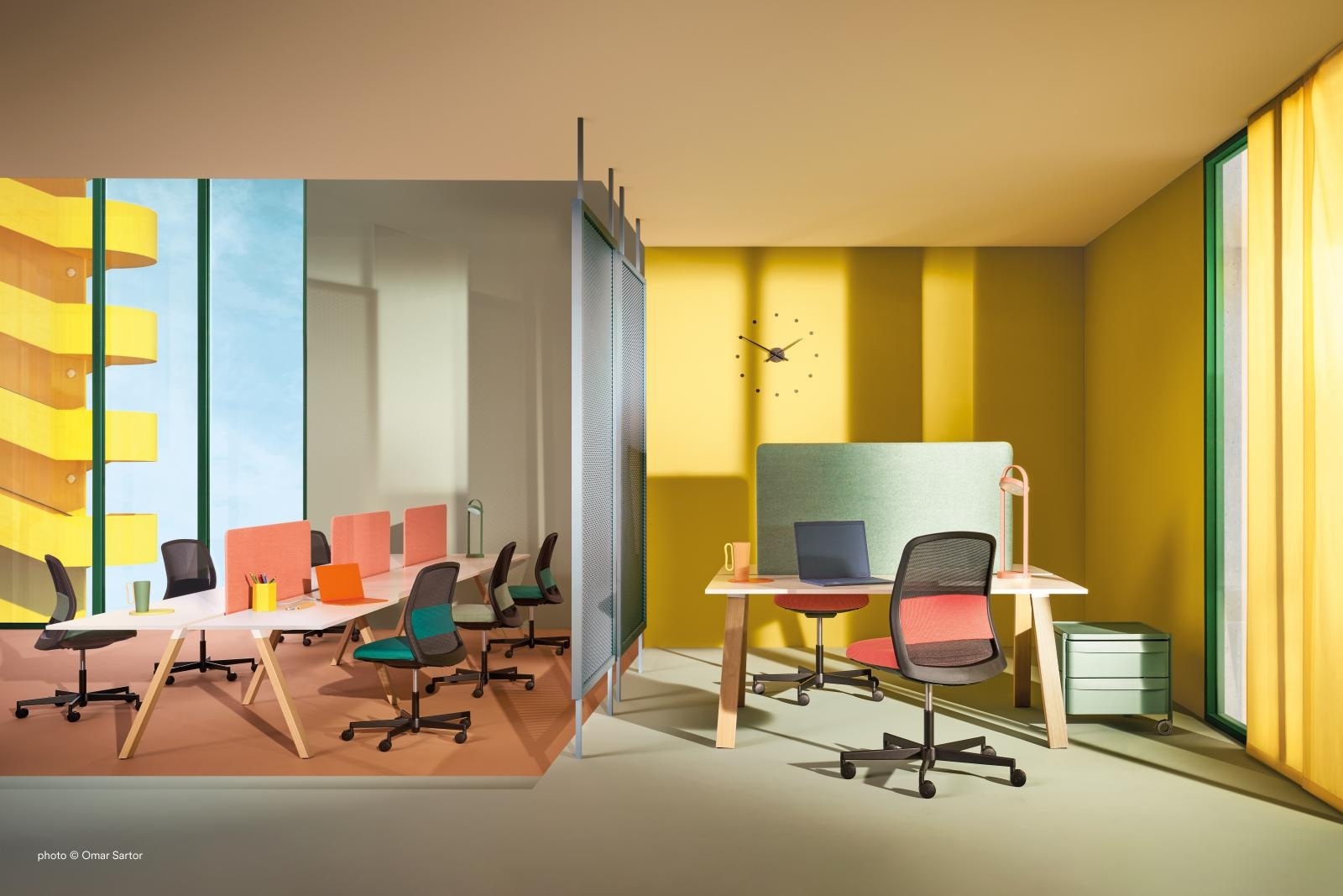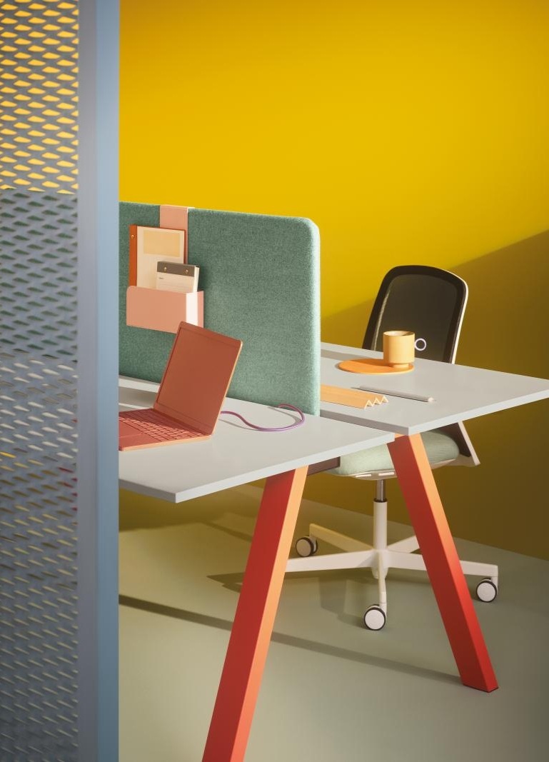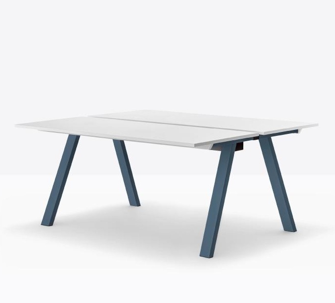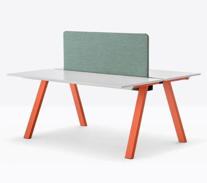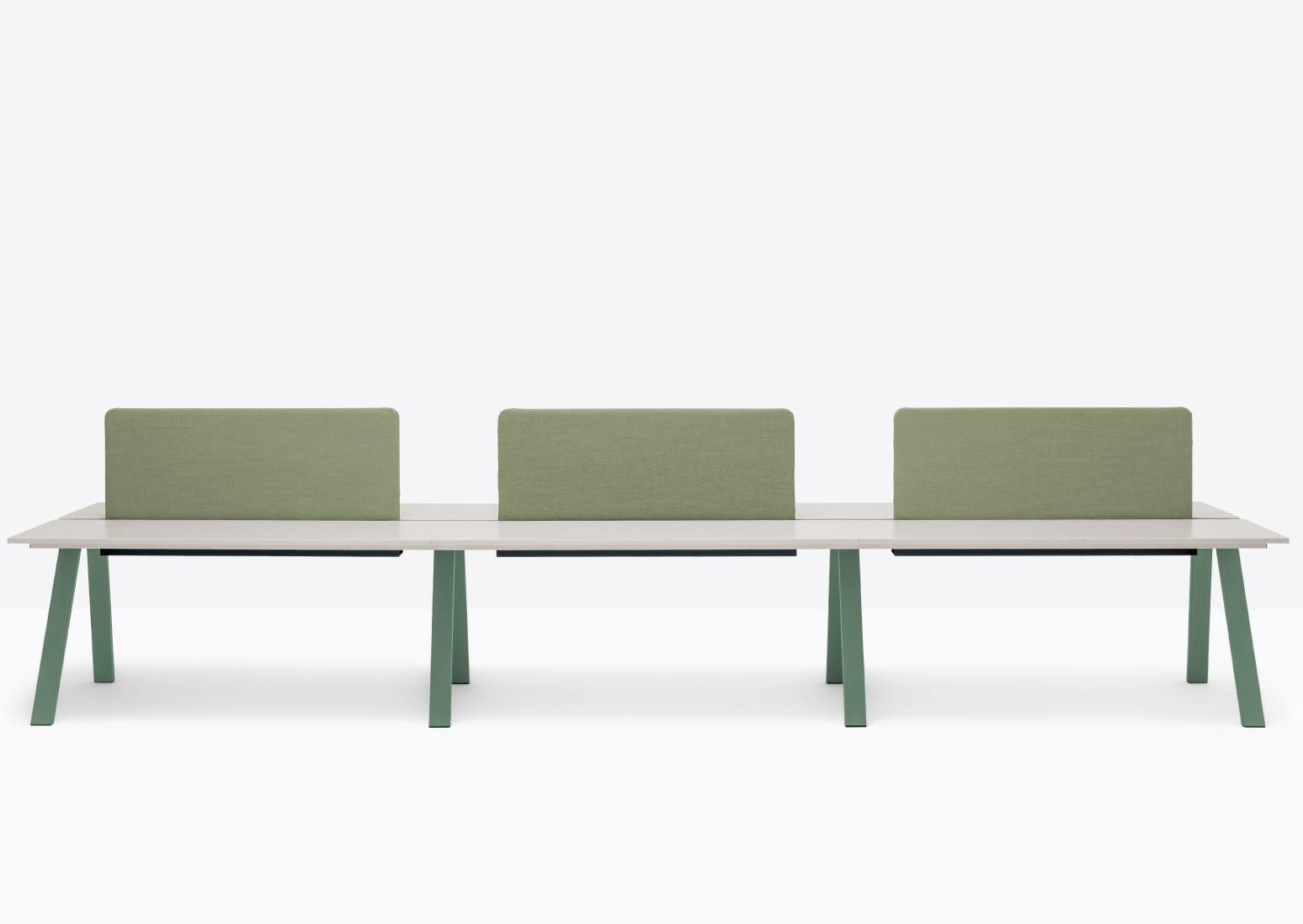 Het Arki modulaire bureaueiland is lineair en strak vanuit structureel oogpunt, maar tegelijkertijd veelzijdig en ontworpen voor verschillende toepassingen. Bureau voor twee, vier of zes personen met stalen schraagpoten en blad met kabelbeheer. Geluidsabsorberende panelen bekleed met stof zijn verkrijgbaar als accessoires voor scheidingsdoeleinden. Niet alleen verhogen ze de privacy, maar tevens zorgen voor een wat meer privé werkplek.