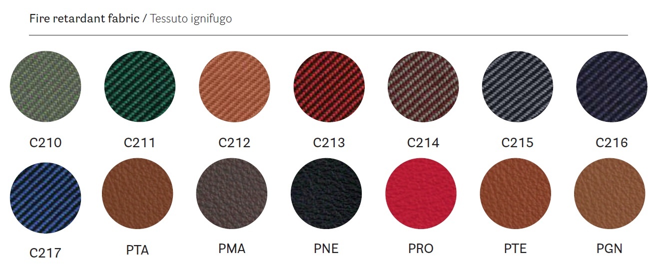De stoel is leverbaar in veel verschillende soorten en kleuren stoffering. Ook lederen bekleding is mogelijk. De voet is leverbaar in het zwart en in gepolijst of geborsteld aluminium.