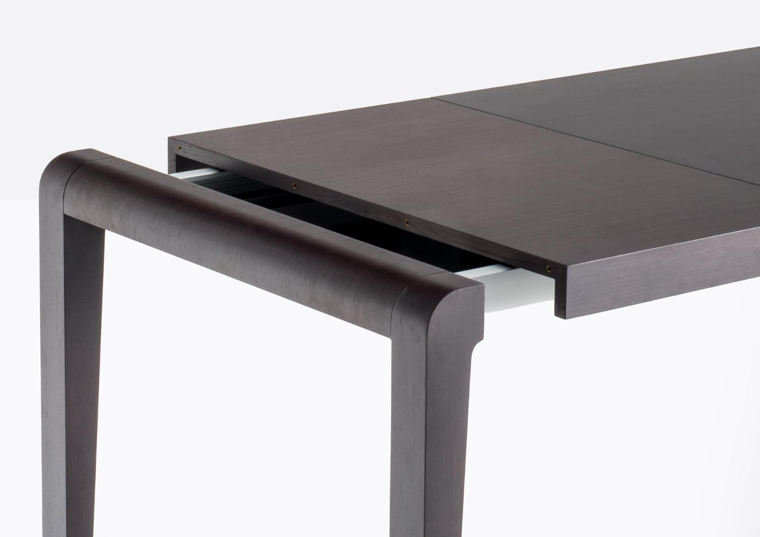 De Exteso uitschuif tafel van het Italiaanse design merk Pedrali is een tafel die zich kenmerkt door een grote veelzijdigheid in gebruik, waarbij de authenticiteit van het materiaal en de lichtheid van het ontwerp harmonieus samengaan. De Exteso is een uitschuifbare tafel met poten en blad van eikenfineer, waarbij het blad is voorzien van een onzichtbaar uitschuifmechanisme met gegoten aluminium geleiders.