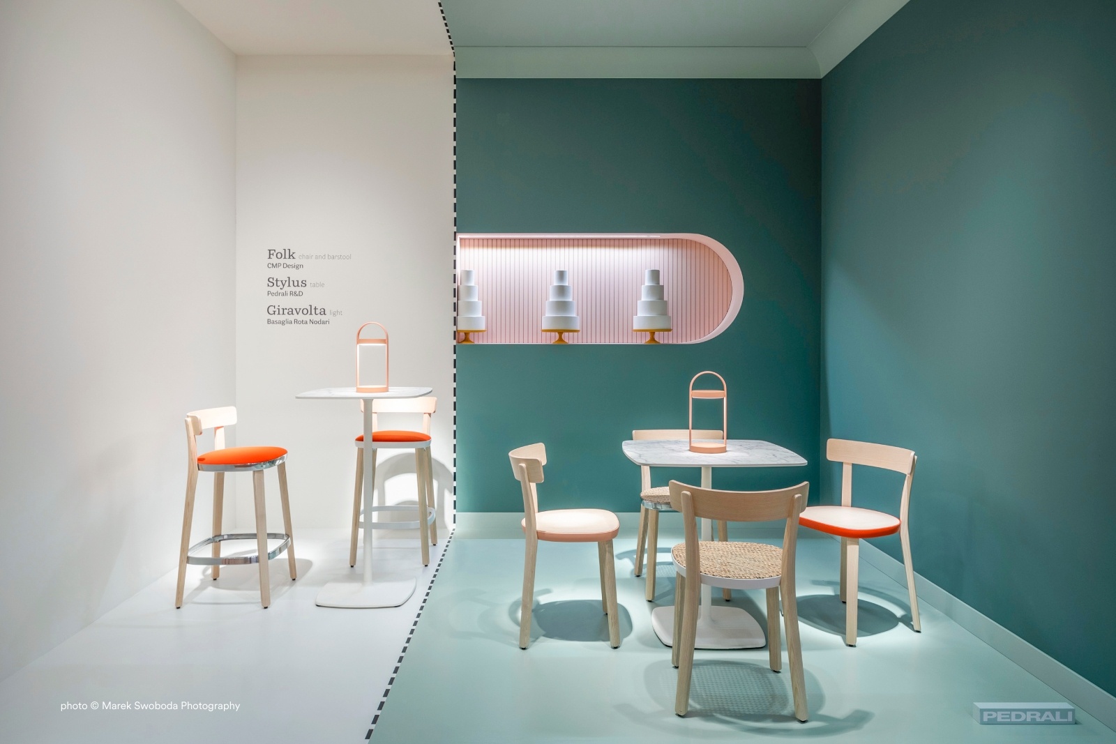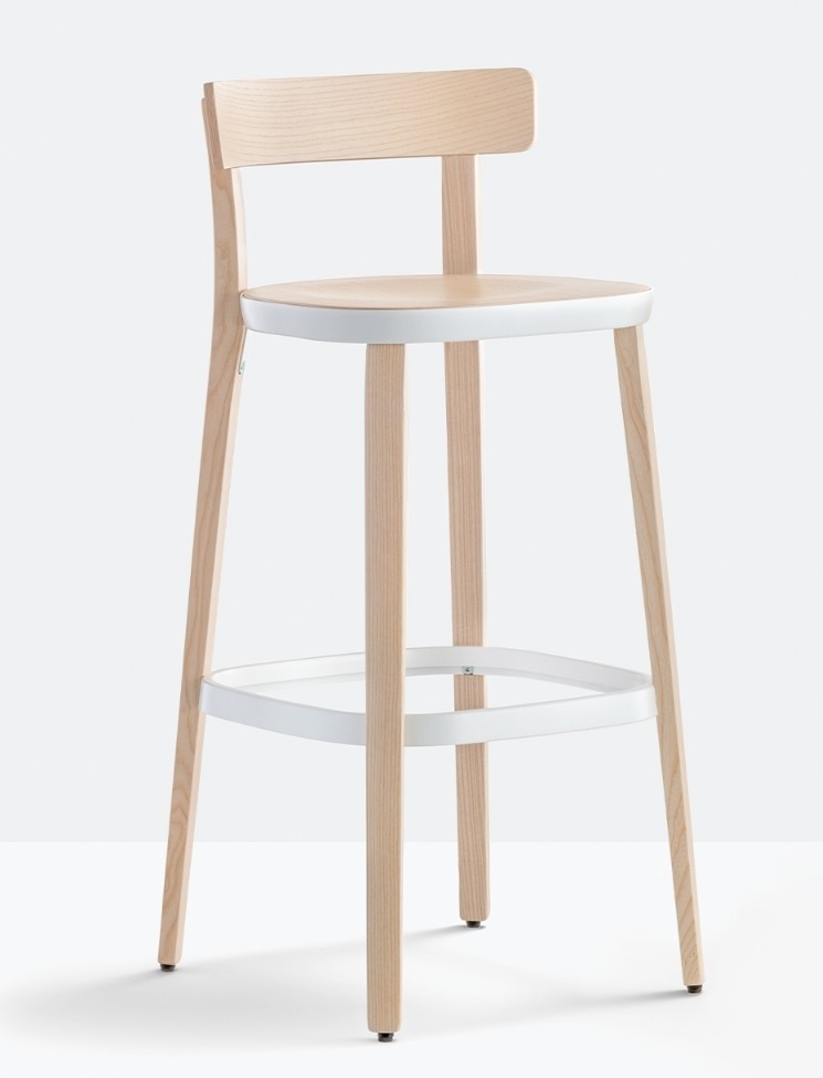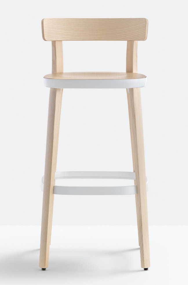 De Pedrali Folk krukken collectie benadrukt de zoektocht naar eenvoud. Het vriendelijke karakter, de warmte van essenhout, de zachte en compacte afmetingen en de menselijke lijnen brengen naadloos het concept over van een kruk die een universele taal spreekt. De lichte, duurzame ring van gegoten aluminium wordt het structurele en kenmerkende element waarmee de barkruk gemakkelijk kan worden gedemonteerd voor recyclingdoeleinden of om onderdelen te vervangen. Het massief essenhouten frame omarmt de aluminium ring die de zitting van essenhouten multiplex vasthoudt. De gebogen multiplex rugleuning zorgt voor totaal comfort en gezelligheid.