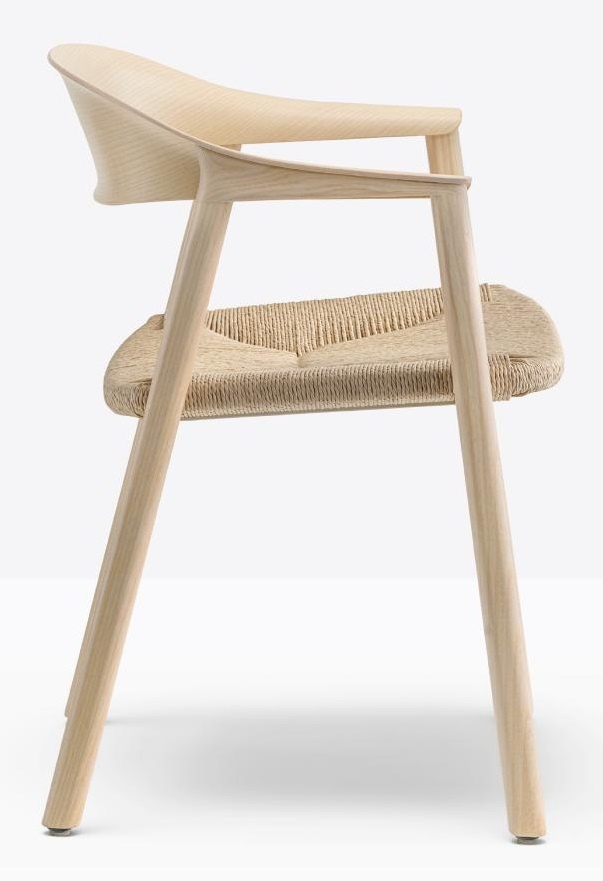 De Pedrali Héra Straw stoel belichaamt het concept van lichtheid en comfort. Deze fauteuil is verkrijgbaar in essen of Amerikaans notenhout en heeft een driedimensionale multiplex rugleuning die gemakkelijk te hanteren is en een opmerkelijk elegant en ergonomisch ontwerp heeft. De zitting van cellulose touw is handgeweven in Italië en geeft de fauteuil een warmere en natuurlijke uitstraling. De ovaalvormige poten zijn volledig geïntegreerd in de rugleuning en doen visueel denken aan een houten sculptuur.