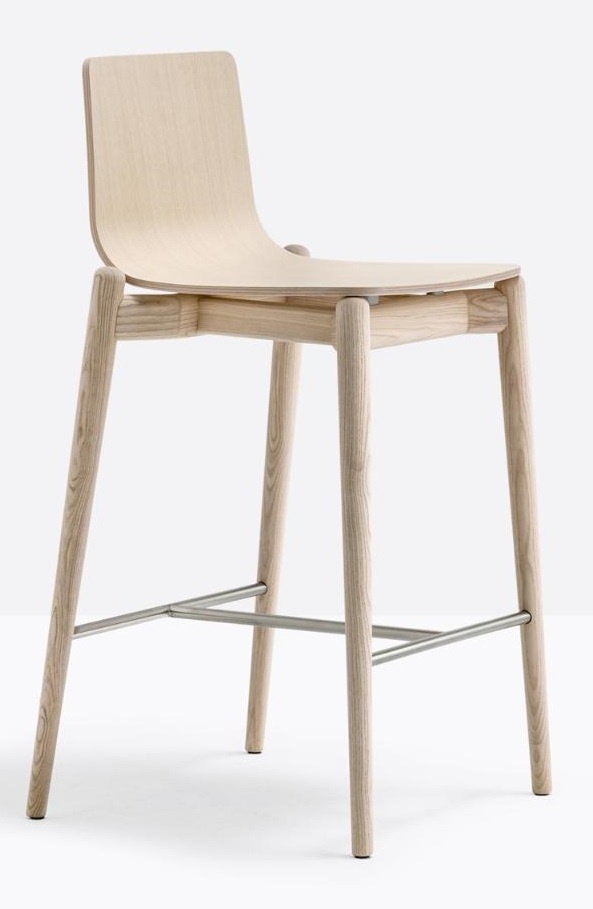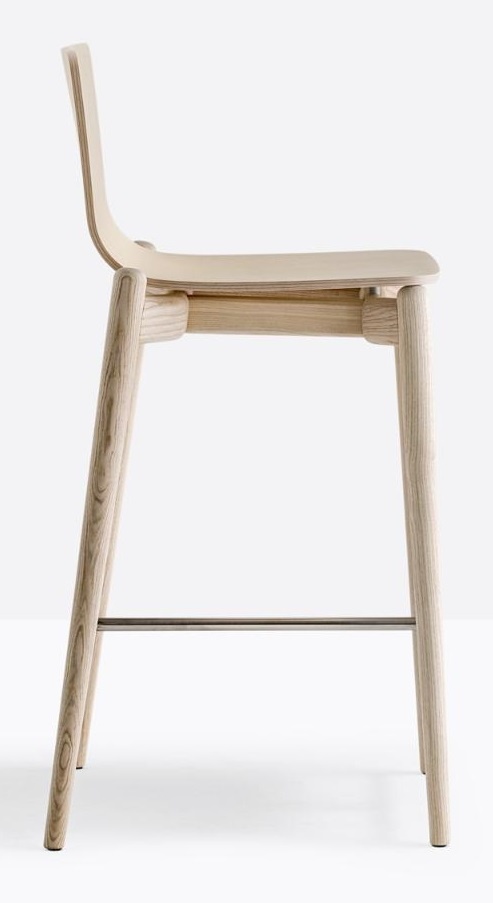 Pedrali Malmö-stoelen roepen een gevoel van warmte op dankzij het gebruik van essenhout, het taps toelopende ontwerp en de traditionele uitstraling. De designelementen komen puur tot uiting, met dikkere verbindingen en een natuurlijke taps toelopende vorm voor een licht en elegant effect. Barkruk met een zitting van essenhoutfineer multiplex, een frame van massief essenhout en een voetsteun van roestvrij staal.
