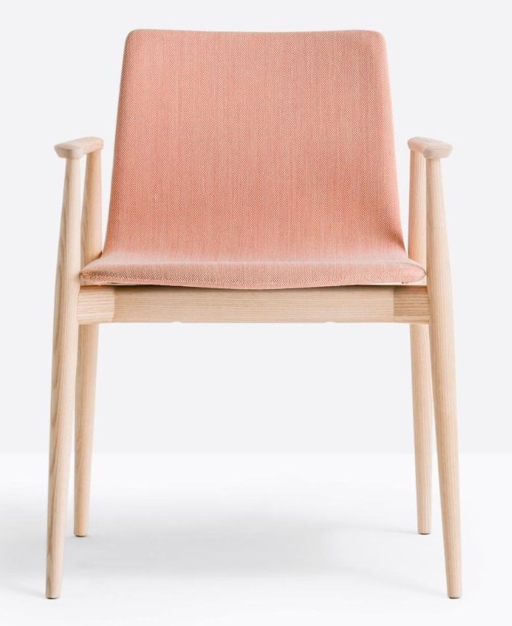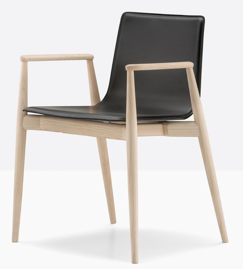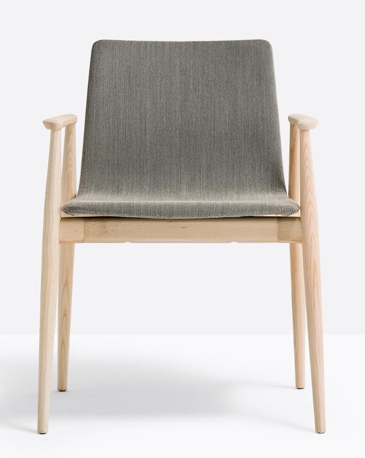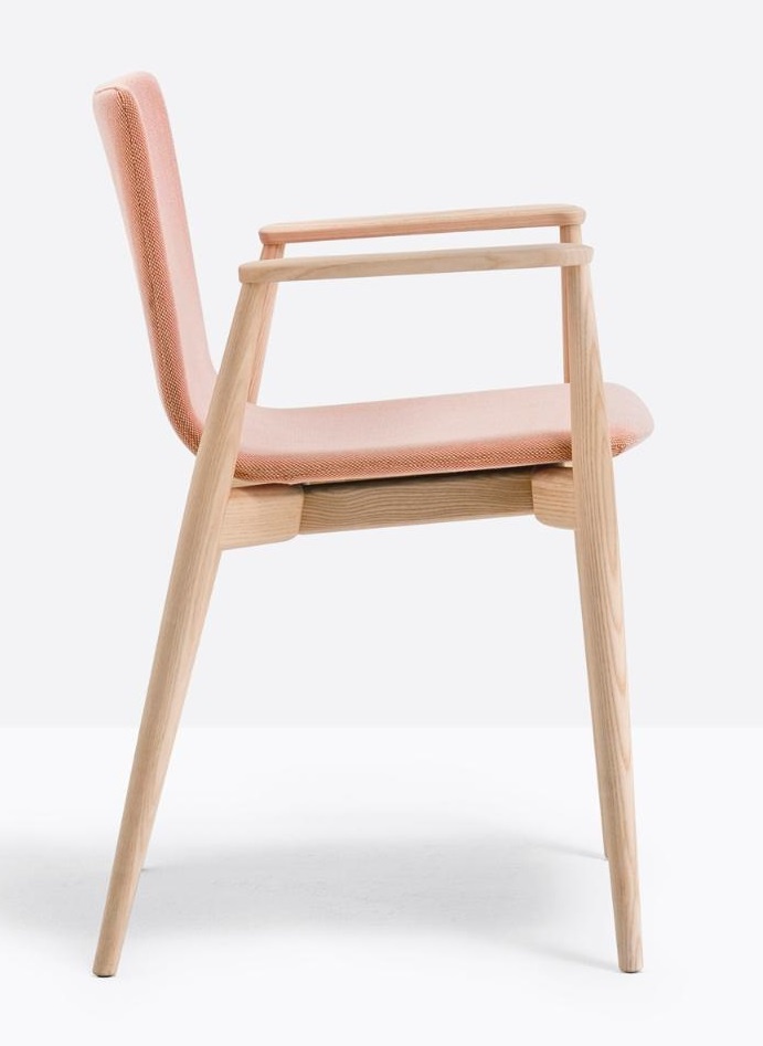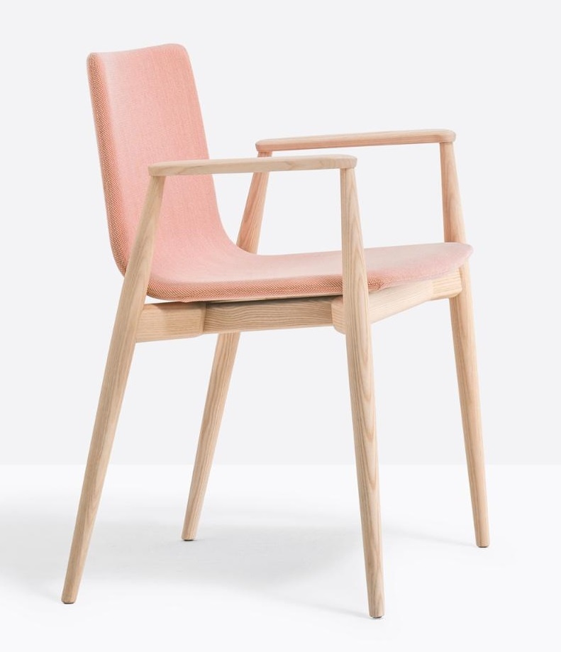 Pedrali Malmö-stoelen roepen een gevoel van warmte op dankzij het gevoel van essenhout, het taps toelopende ontwerp en de aantrekkingskracht van traditie. De designelementen komen puur tot uiting, met dikkere verbindingen en een natuurlijke taps toelopende vorm voor lichtheid en elegantie. De stoel met gestoffeerde zitting, massief essenhouten frame en armleuningen.