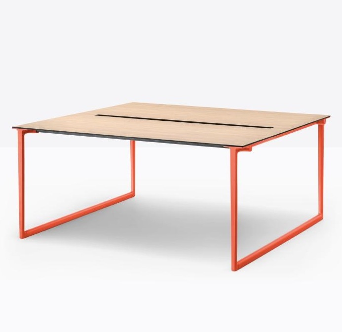 Het Toa Bureaueiland, van het Italiaanse designmerk Pedrali, combineert een technisch-industriële stijl met decoratieve allure, waardoor een functioneel en suggestief product ontstaat. Het bureau is licht en minimalistisch en wordt gekenmerkt door een frame van massief gegoten aluminium. De belangrijkste kenmerken zijn de taps toelopende brugpoten van gegoten aluminium, die dunner zijn aan de basis en breder worden naar het “T”-element dat het blad ondersteunt. Verkrijgbaar in kleinere afmetingen en met een decentrale kabeltoegang, is hij even geschikt voor “lichte” kantoren, directiekamers en woonruimtes. Het Toa bureau is verkrijgbaar in een groot aantal varianten.
