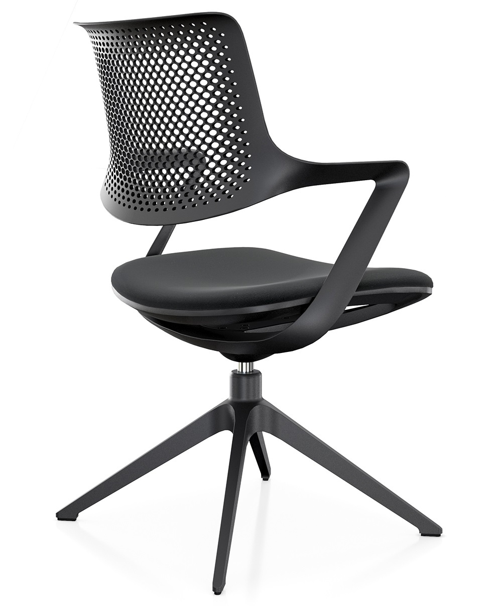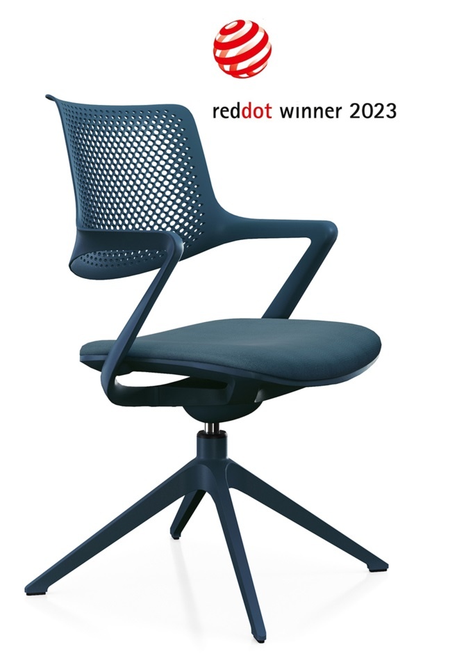 In opdracht van en in samenwerking met onze productie is deze stoelenserie ontstaan. Martin Ballendat is verantwoordelijk voor dit ontwerp en heeft met deze stoel de RED DOT DESIGN AWARD 2023 in de wacht gesleept. De nieuwe V14 Spin vergaderstoel is vervaardigd van kunststof, een gekleurd frame en gestoffeerde zitting, in "ton sûr ton". Het kunststof frame is in 11 frisse kleuren beschikbaar. De armleggers lopen door in het frame waartussen de rugleuning met een gatenpatroon voor ondersteuning in rug zorgt. Het 4 teens onderstel zijn in de zelfde kleur als het frame. Het frame geeft de stoel flexibiliteit met een comfortabele zit.