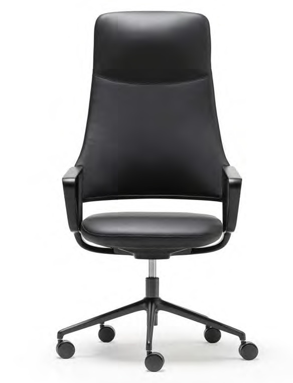 De aluminium armleuningen vormen de kern van de fauteuil. Zij zijn voorzien van het synchroon-mechanisme van de nieuwste generatie en de rugleuning is gemaakt van staal en polyurethaan met verschillende dichtheid.