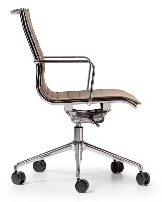 Standaard wordt de design bureaustoel geleverd met zwarte wielen. Optioneel zijn de metalen wielen bij te bestellen.