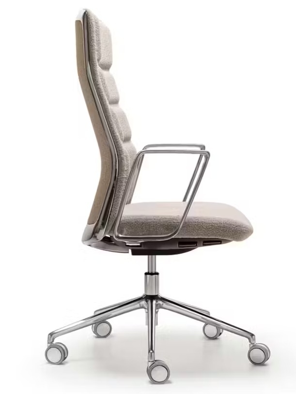 De That's it bureaustoel van Quinti is een fauteuil met elegante en lichte vormen, zijn gegoten aluminium frame combineert lichtheid, stevigheid en een speciaal hi-tech ontwerp. Dat vat alle kenmerken samen van deze "werk" stoelen. De That's it ergonomische bureaustoelen van Quinti omvat in haar elegante en moderne lijnen de essentie van een bureaustoel. De bureaustoel heeft een grote en ergonomische rugleuning. De gevoerde kussens integreren goed met het aluminium frame en garanderen een uniek ontwerp. Dit maakt hem zeer geschikt als design directie bureaustoel en als design conferentiestoel. De basis van de Quinti That's it is gemaakt van gepolijst aluminium of zwart aluminium en wordt gecombineerd met een kantelmechanisme van topkwaliteit en zorgt voor een hoge mate van aanpassing.