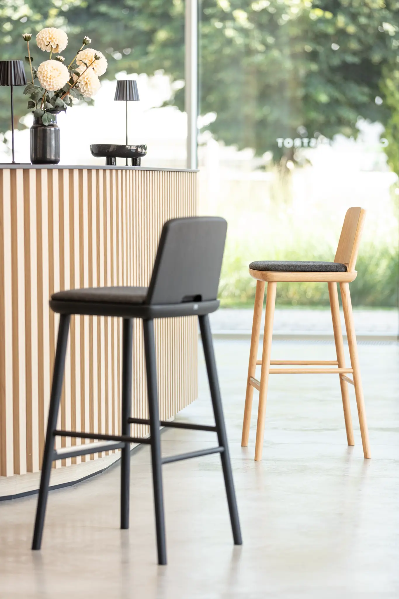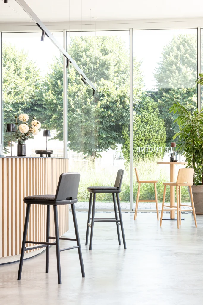 Geschikt voor elke contractomgeving – bar, restaurant, lounge, hotels – Tablet is een massief houten kruk met verfijnde proporties en een ingetogen ontwerp. De holle kern van de zitting maakt hem licht en dankzij de handige greep aan de onderkant van de rugleuning kan hij gemakkelijk worden verplaatst.