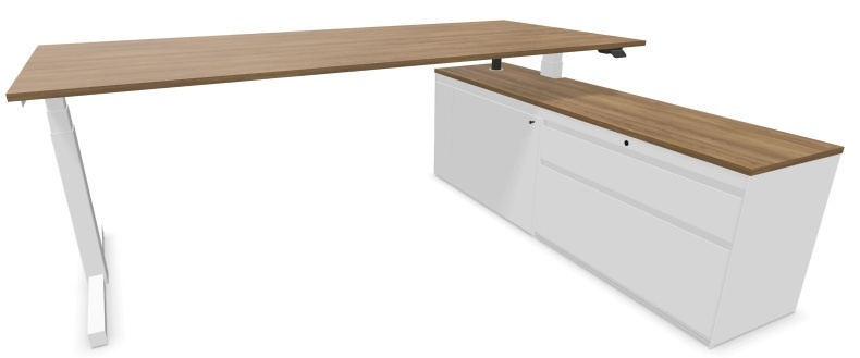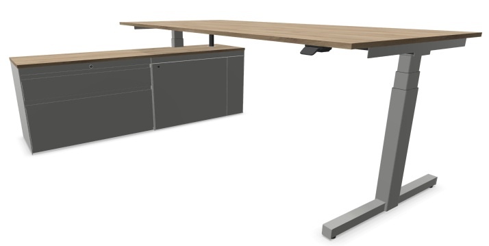 Voortman Hi Tee Duo Zit-sta bureau met vast dressoir: voldoende beweging op kantoor is belangrijk. Met zit-sta werkplekken wordt een actieve werkhouding bevorderd. De solide constructie van het vast dressoir is eenvoudig te monteren en te verplaatsen van de linker naar de rechterpoot of vice versa. Door het dressoir te integreren, is een complete bureauopstelling op maat samen te stellen. Kies voor geïntegreerde opberg- en aflegruimte aan het bureau!